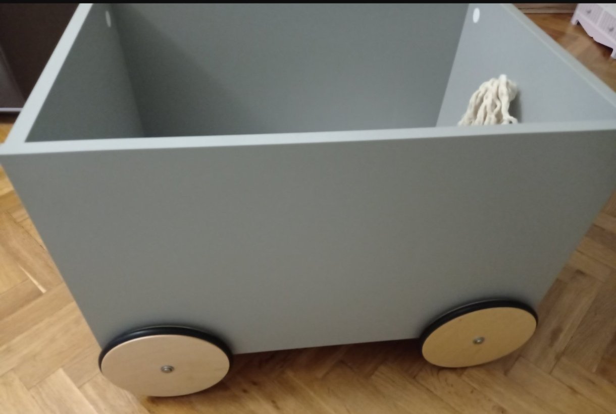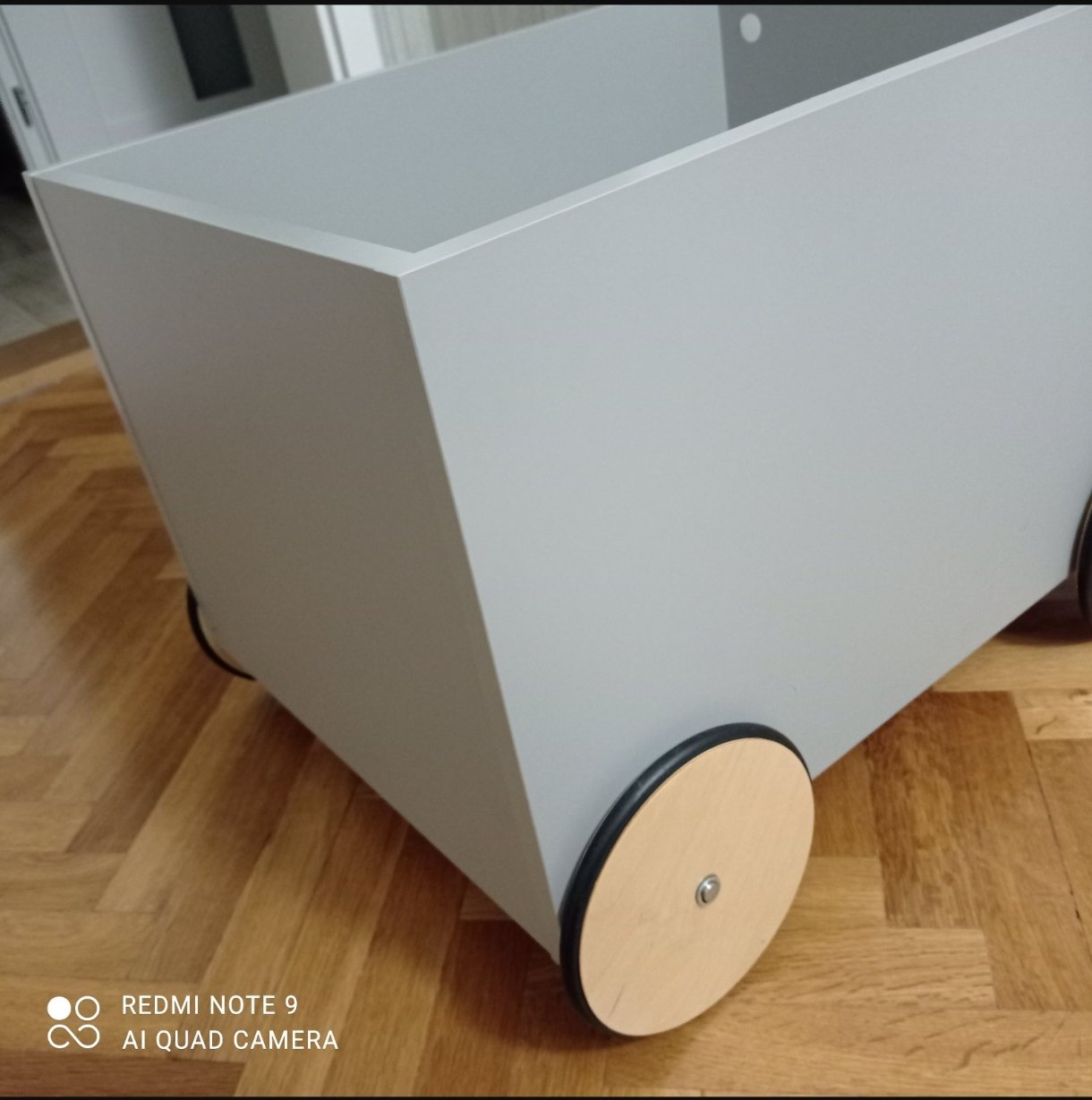 Krásny drevený vozík na hračky, skvele dopĺňa izbičku