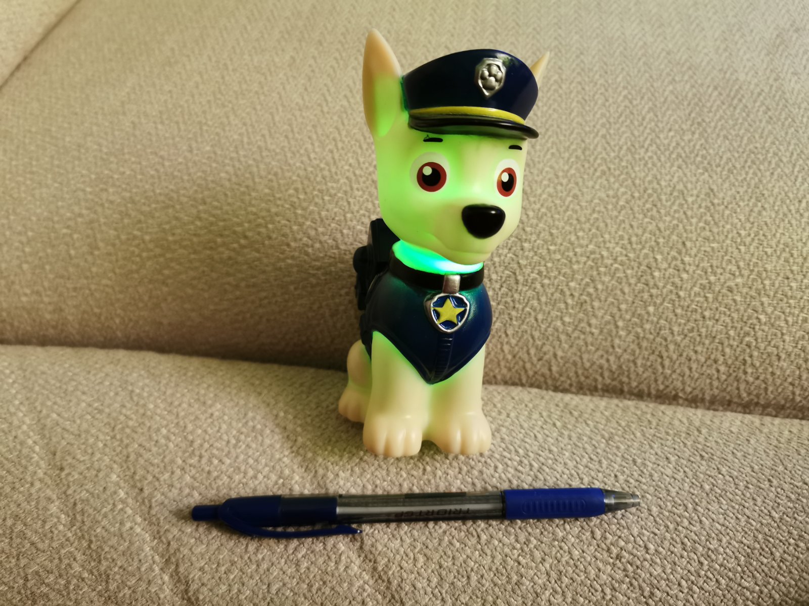 Malá svietiaca postavička Chace z Labkovej patroly (Paw Patrol). Svieti rôznymi farbami.
