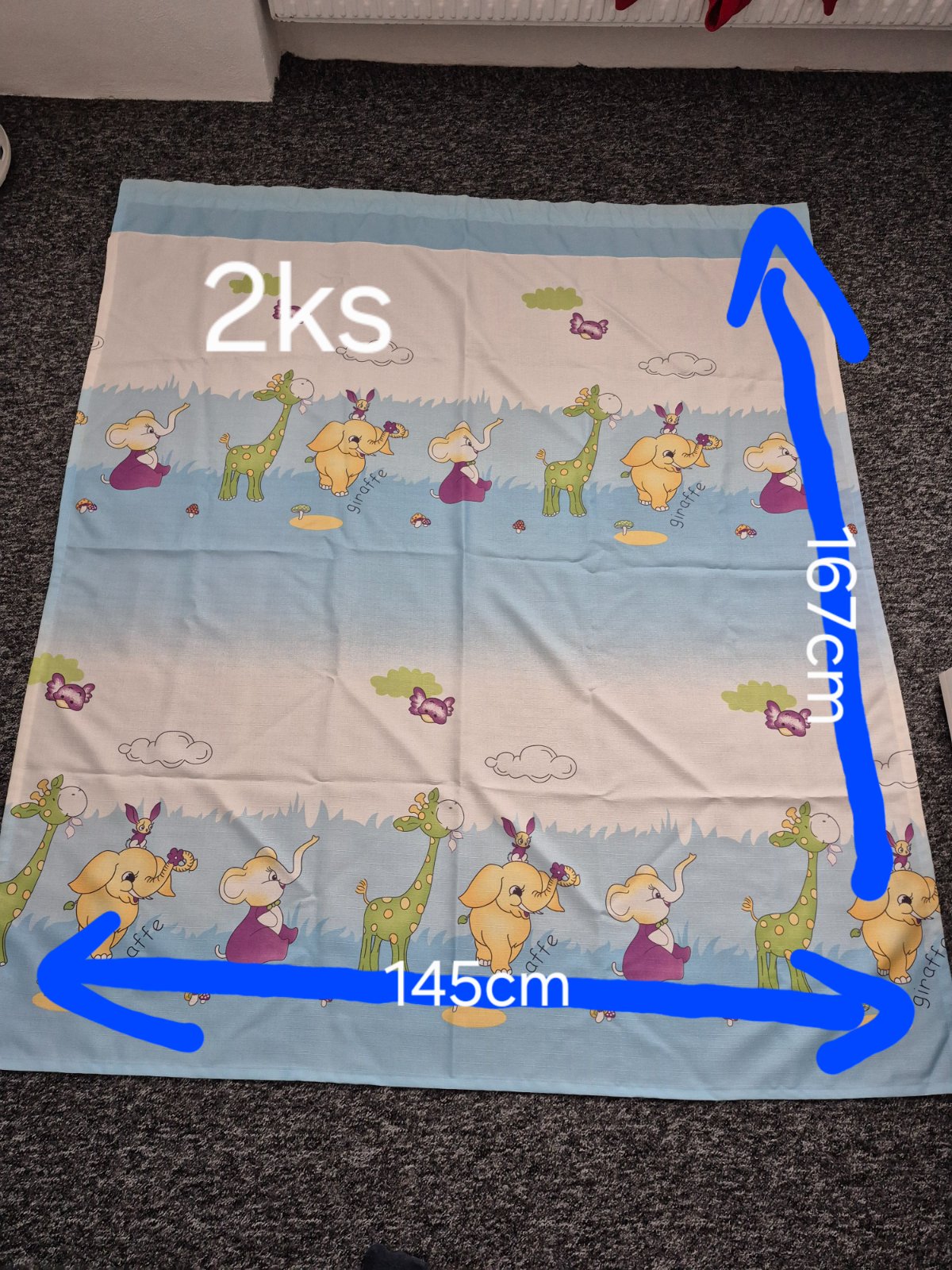 Predam asi 2krat pouzite závesy do detskej izby, nakolko som ich striedala so zaclonami. Su to 2 väčšie kusy, ktore som mala zavesene po bokoch, 2 menšie kusy, ktore je mozne zavesit do stredu okna, prípadne podla vlastnej volby a v závislosti od velkosti okna. My sme ich využívali len ako dekoračné, nakolko mame žalúzie. Je mozne ich využívať aj na zatienenie, avsak trochu prepúšťajú svetlo (vid foto). Potlac je jednostranna. Cena 10eur plus poštovné.