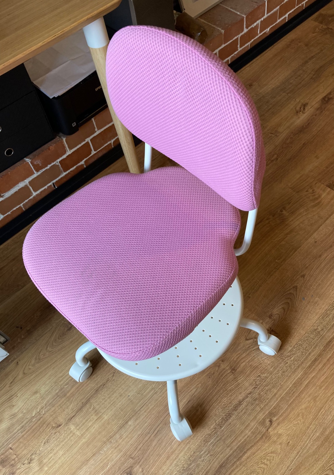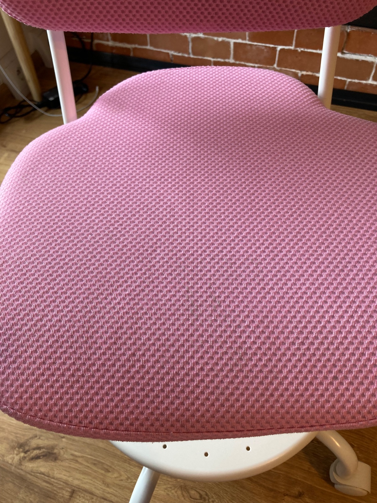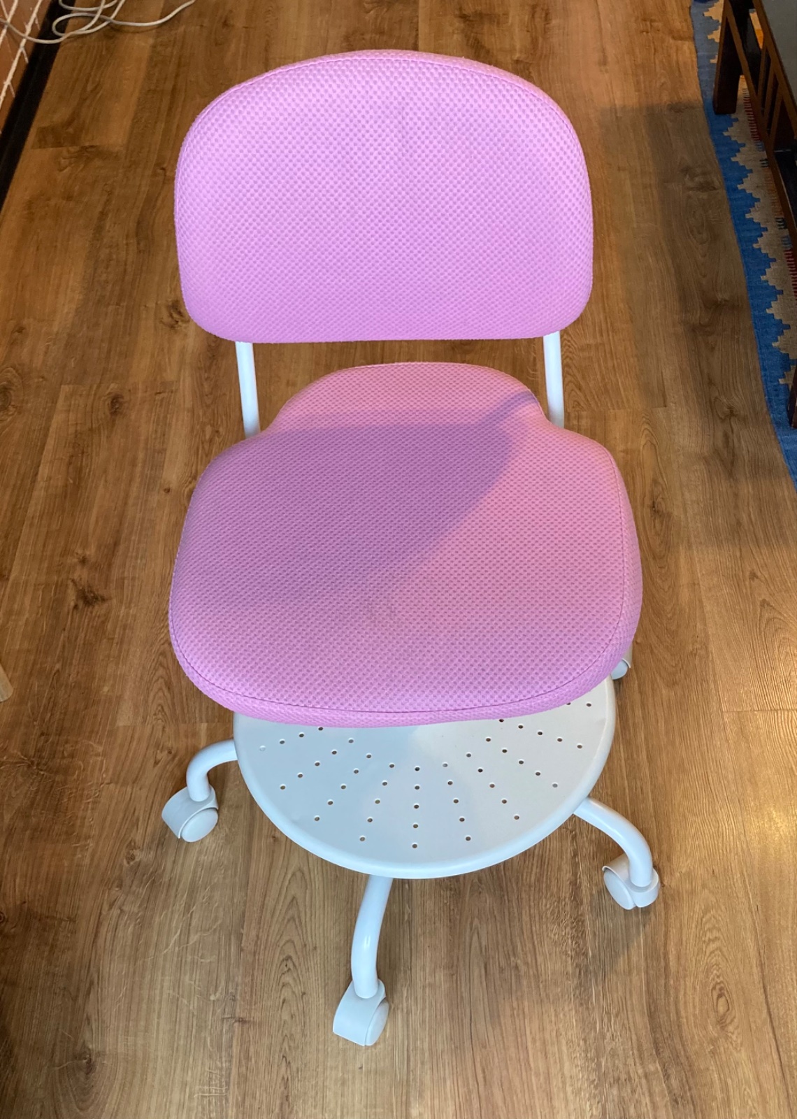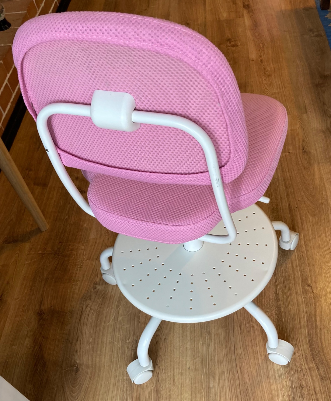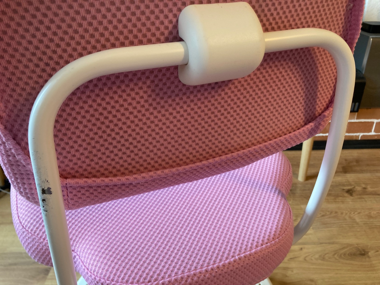 Používaná detská stolička VIMUND. Funkčná, bez problémov. Nastavitelna hĺbka a výška sedu. Po 1 dieťati. Sedak aj opierka su v poriadku, nevysedene. Poťah sa dá prať (okrem opierky vzadu za chrbtom, to je napevno.) Chybičky: malinky - malo viditeľný fľak na poťahu (asi sa da vyprať, neskúšala so špeciálne, prala som na klasickom 30st.programe), suchnuta konštrukcia od steny na kovovom ráme vzadu na chrbátiku. Inak Ok.