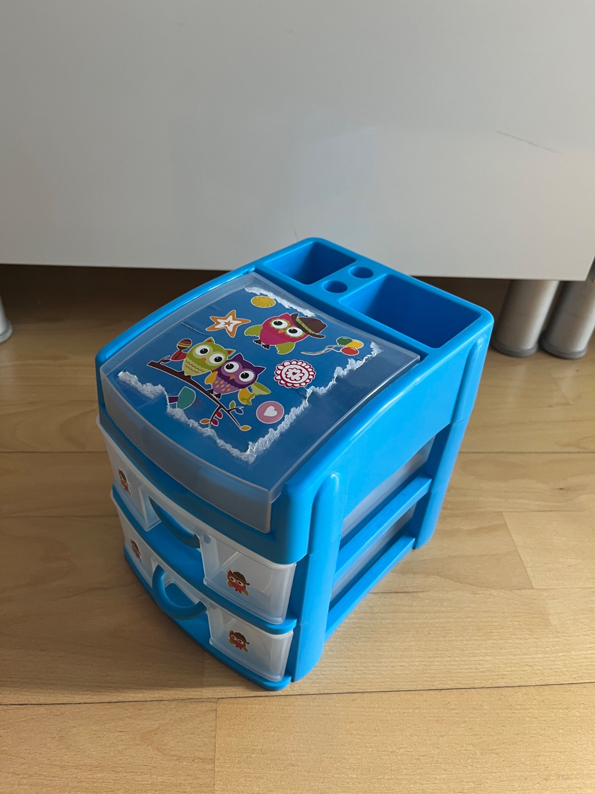 Predam plastový boxik na školské pomôcky, nema poskodenia, len bezne opotrebovanie, nálepka na vrchnaku sa nam nepodarila dat dole (len len zle odlepena na okrajoch - da sa odstranit zrejme riedidlom alebo prekryť inou). Rozmer 14 cm sirka, 19 cm hĺbka, 18 cm vyska, ma 2 supliky a vrchnú otváraciu cast dohora. Symbolicka cena. BA - Ruzinov.