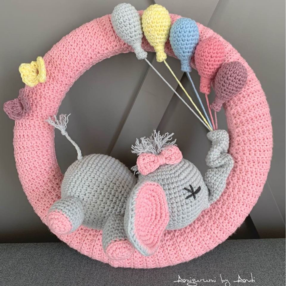Háčkovaný veniec do detskej izby s priemerom 28cm.