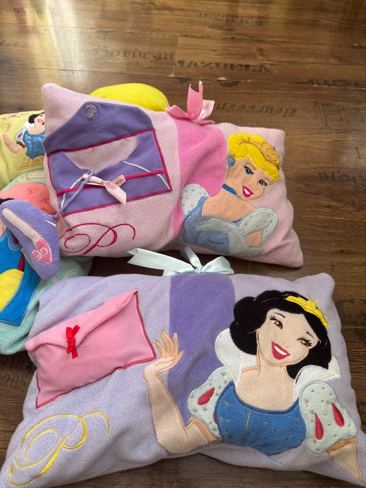 Ponúkam krásnu zbierku Disney vankúšikov 3 s motívom Snehulienky a jeden so Šípkovou Ruženkou. Obdĺžnikové vankúšiky majú aj v liste ukryté mini pero a srdce/jabĺčko. Mali sme ich rady, tak drobné známky bežného používania sú ale naďalej v peknom stave. Cena len jedného vankúšika bola cez 20eur a boli zakúpené dávnejšie, tak už aj ťažšie zohnateľné. Naozaj krásne. Cena spolu za 4ks. Poštovné podľa taríf.