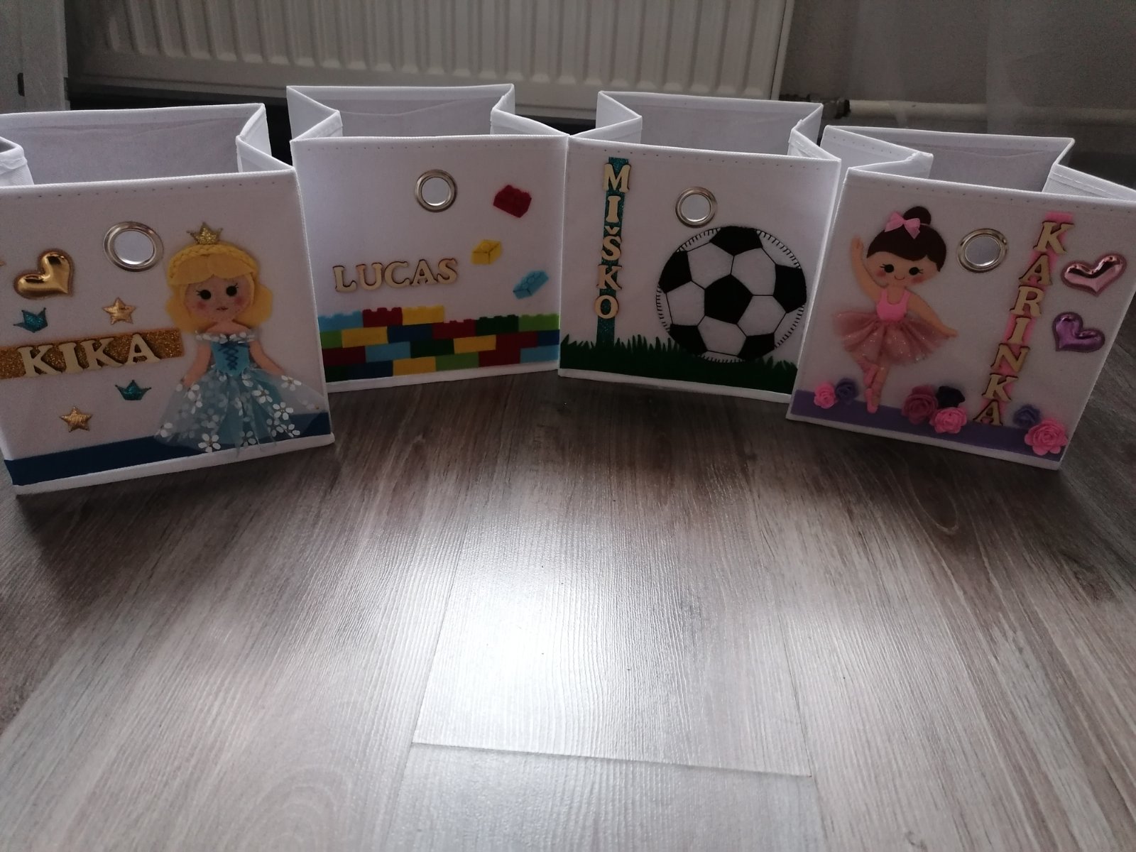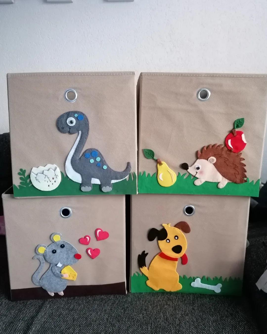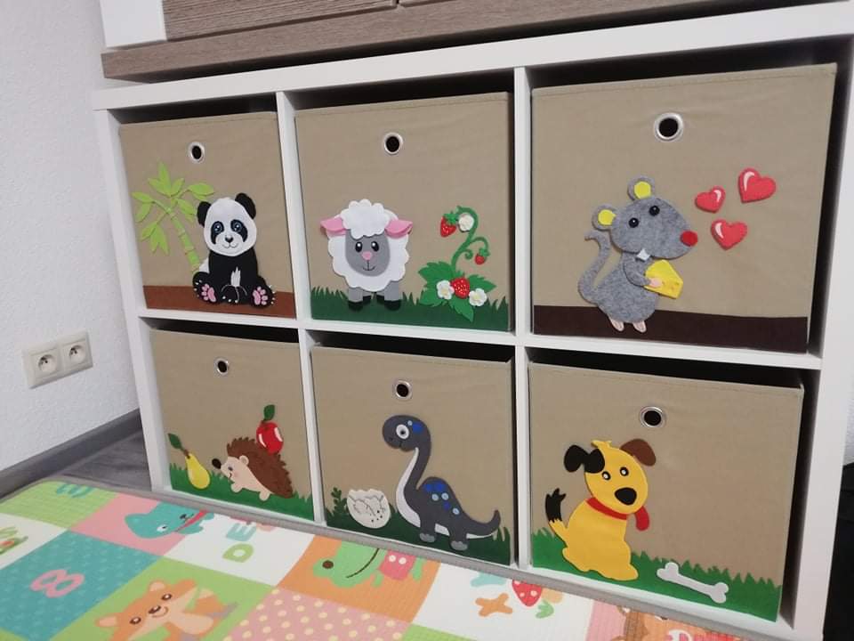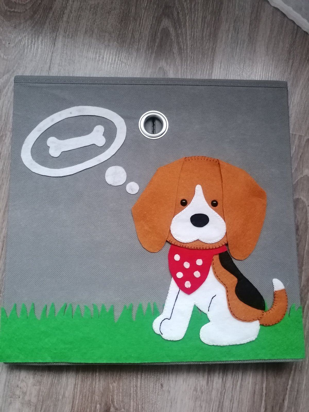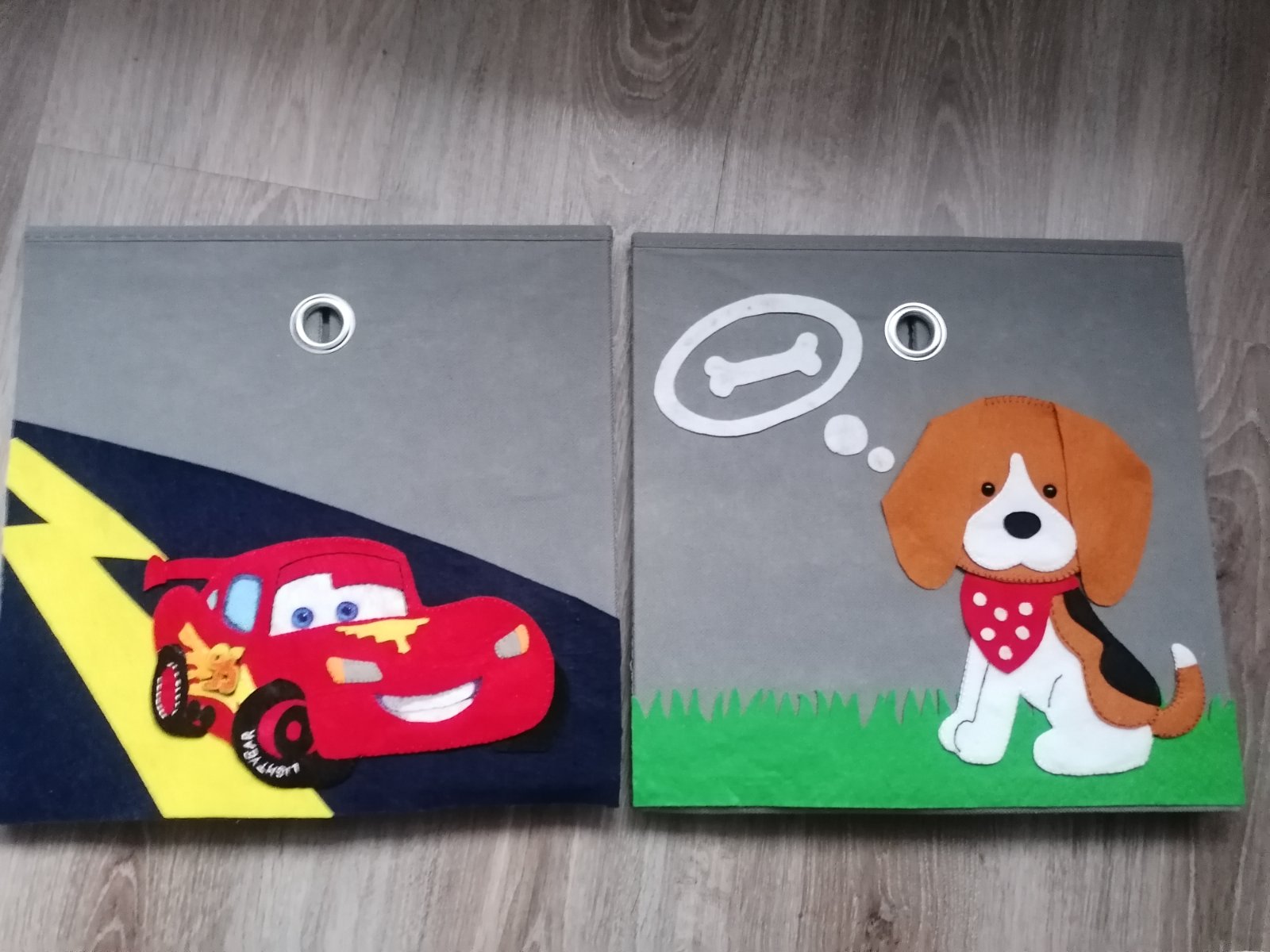 Latkovy úložný box s motivom na želanie. Obrázky su rucne site z filcu a napevno nalepene. Cena sa odvija aj od ceny boxu a zlozitosti obrazku. Cena ilustracnych boxov 13e/ks(30x30cm) biele 8e/ks(20x20)