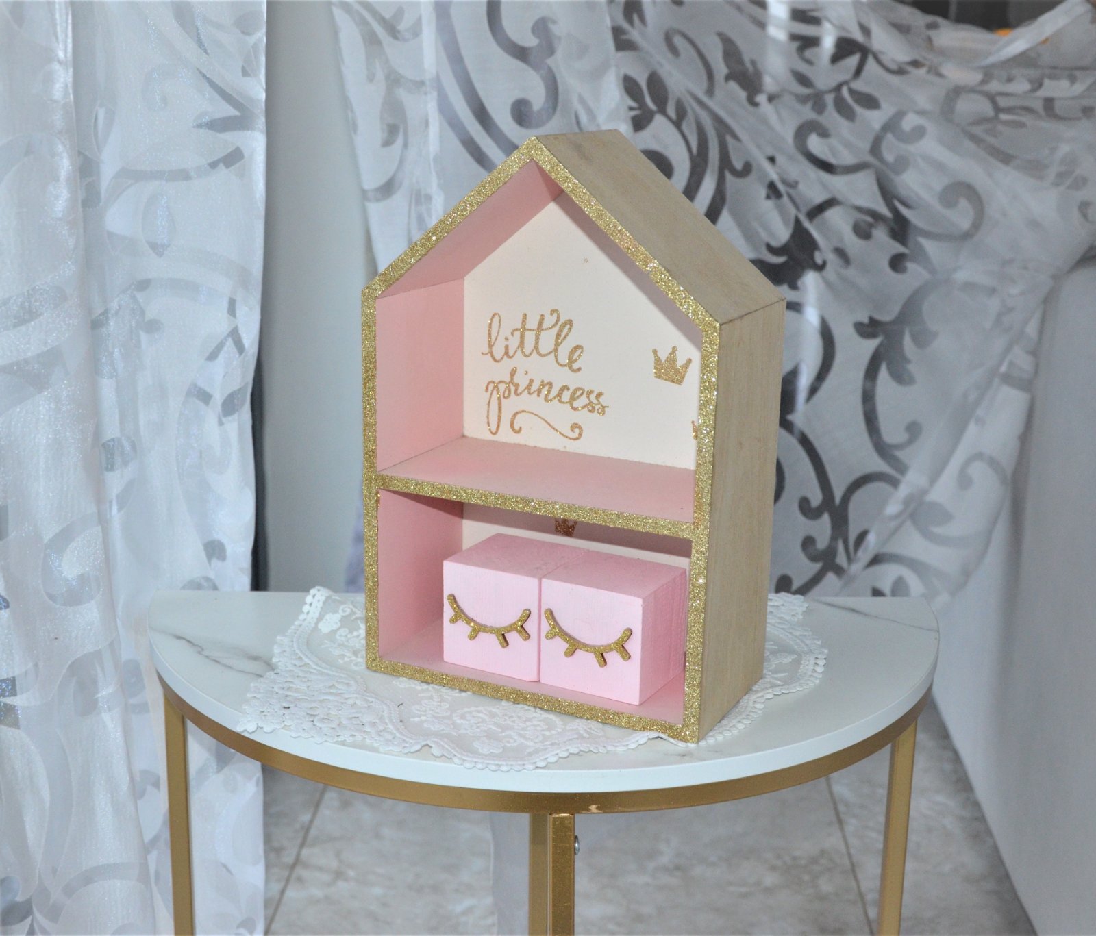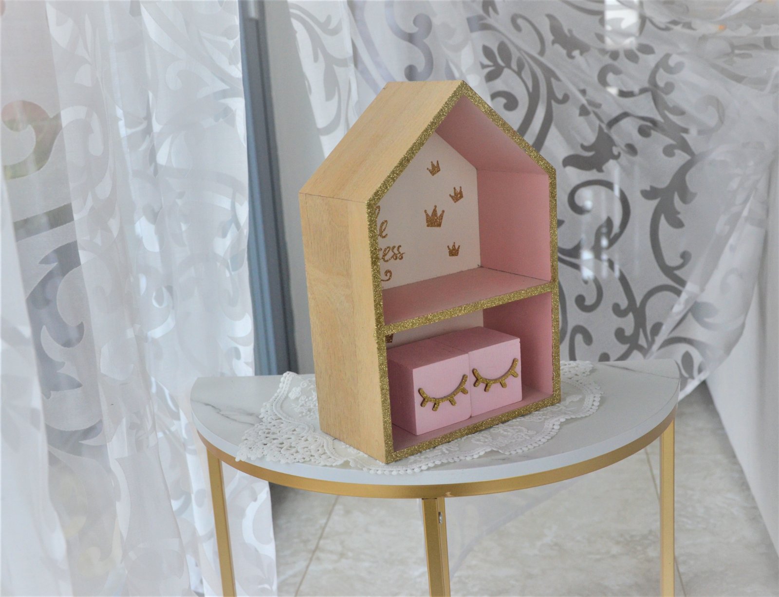 Drevená polica-domček