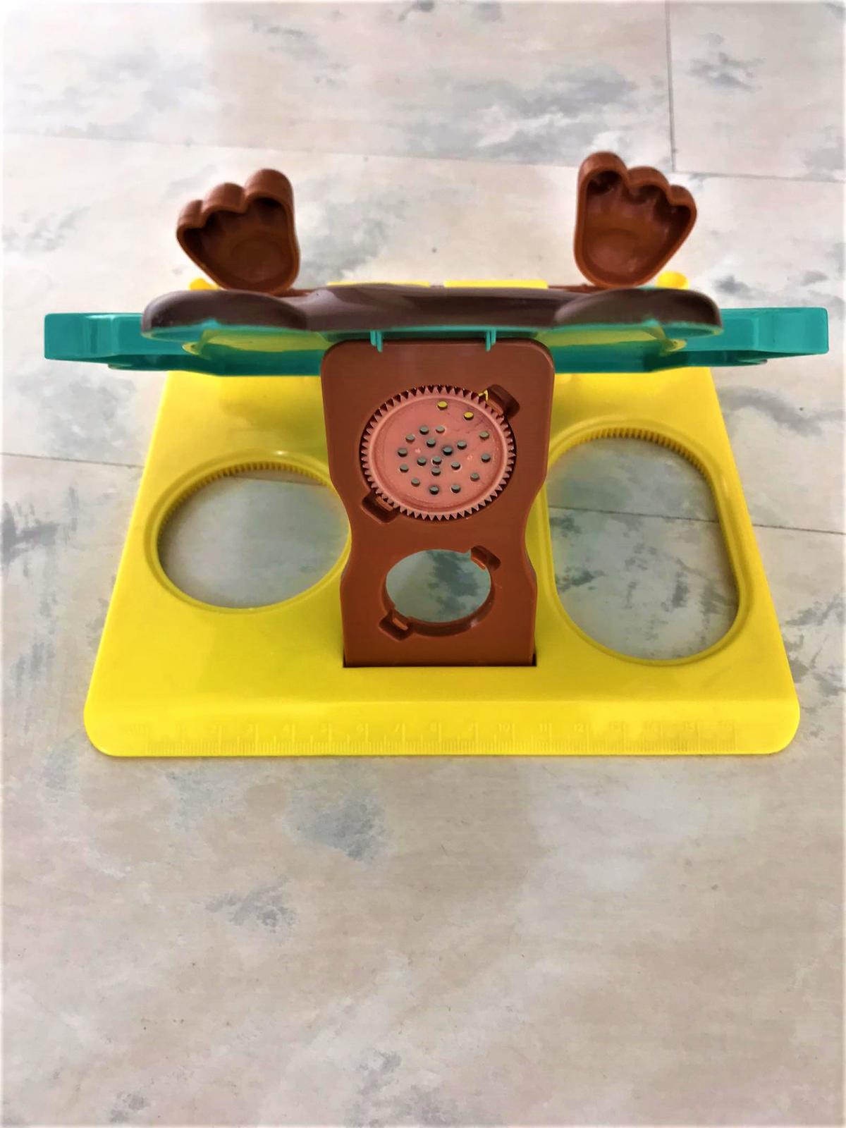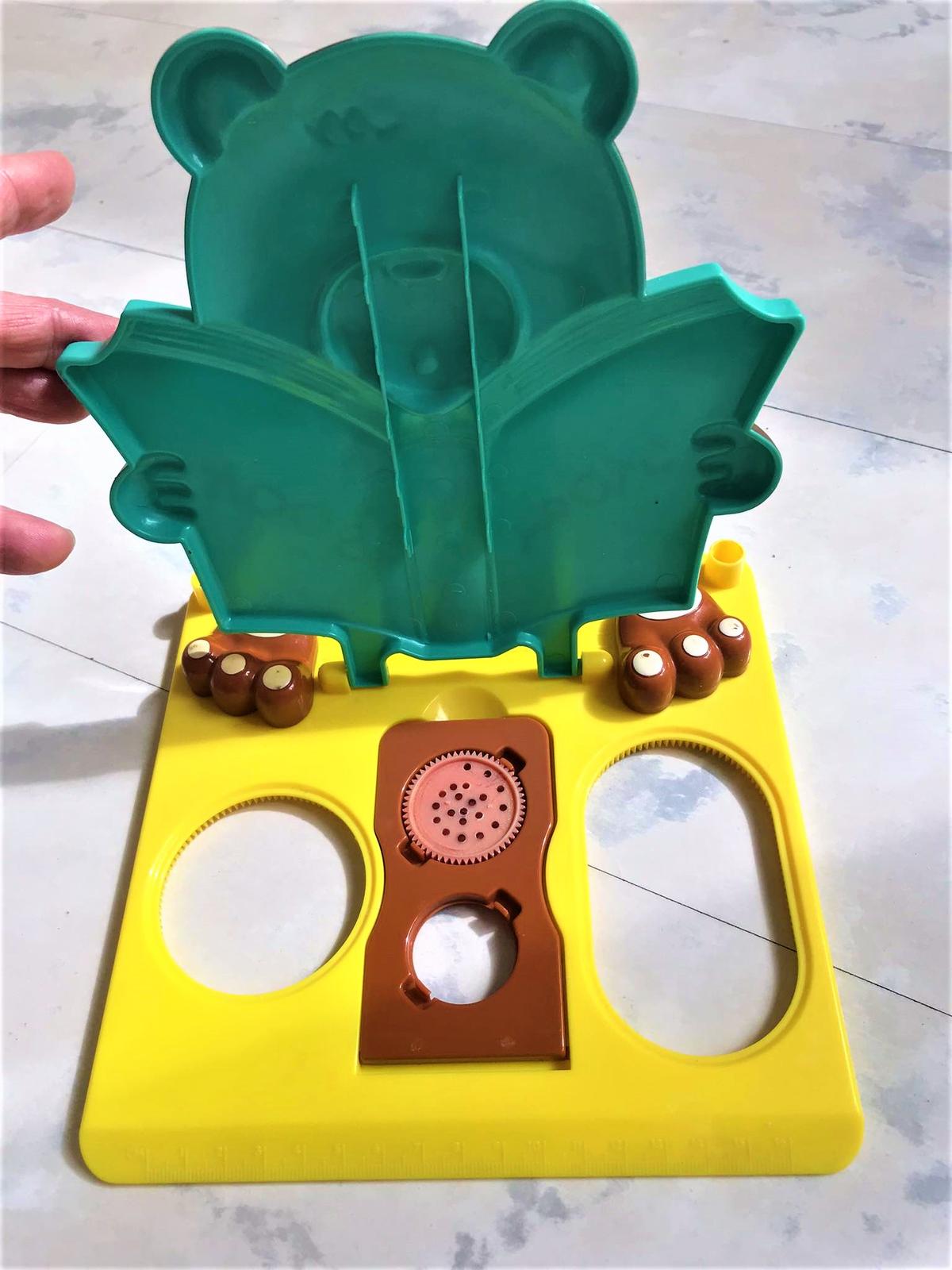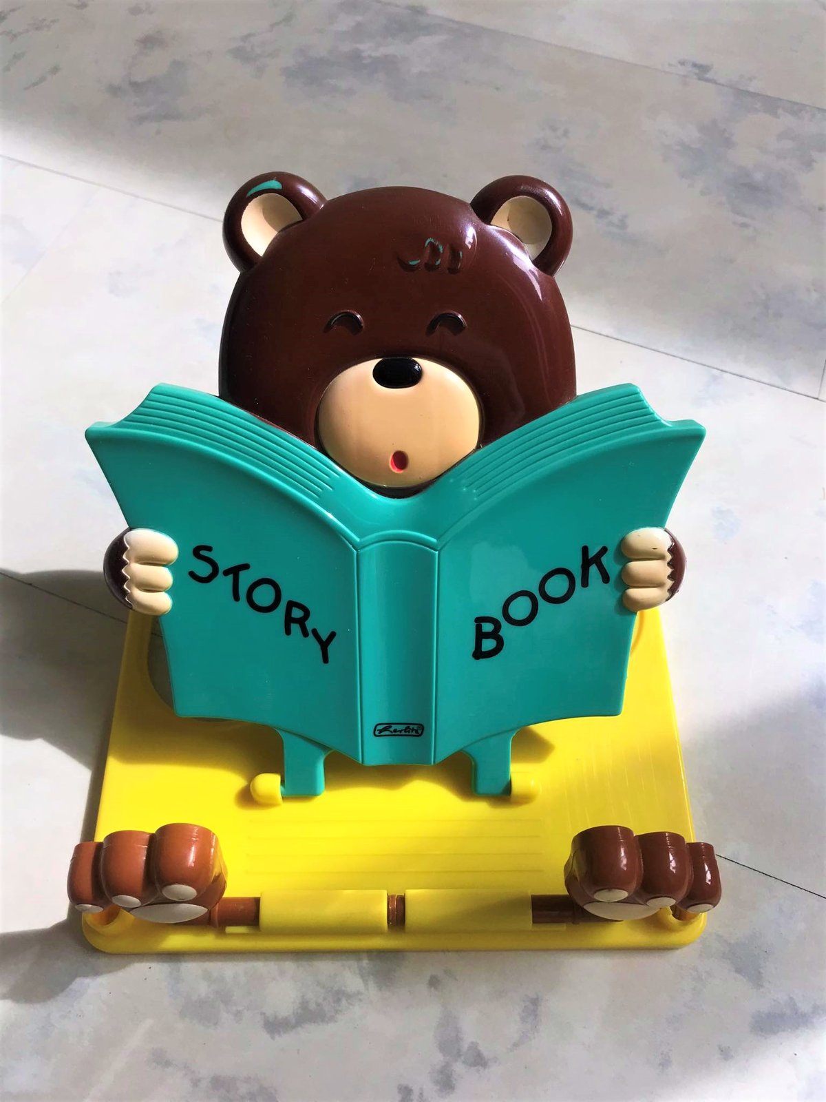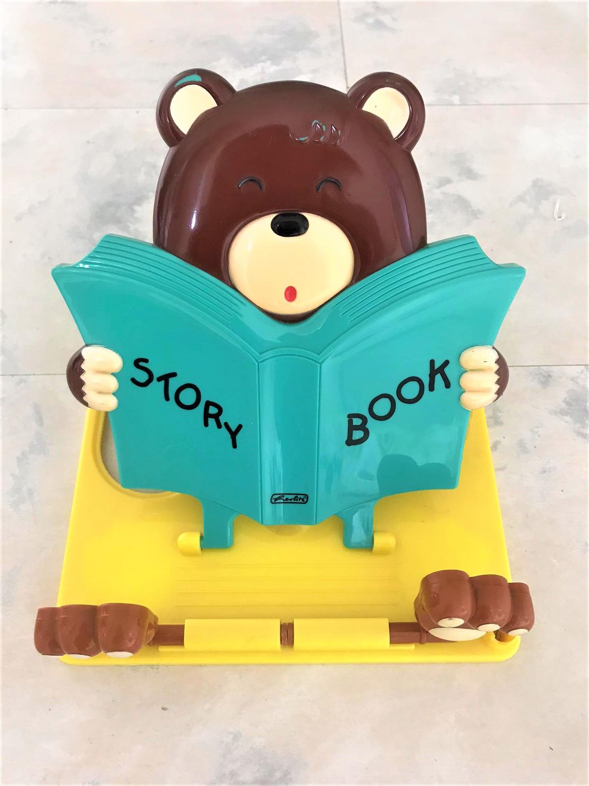 plastový nastaviteľný držiak na knihu,dobrý pomocník a pekný doplnok do detskej izby,19 x 22 cm,na boku držiaky na perá/ceruzky,dá sa poskladať - viď foto, s labkami ,ktoré sú sklápacie sa pridržiavajú strany otvorenej knihy