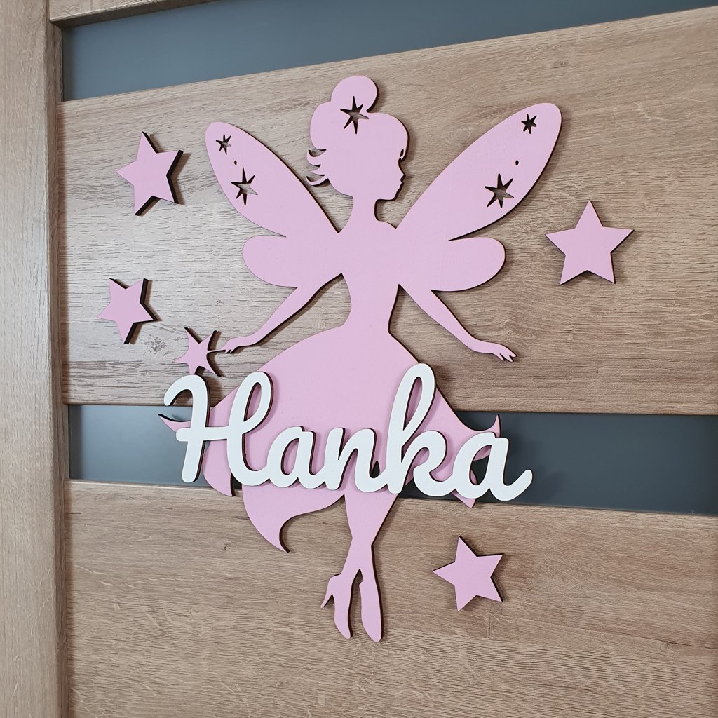 Víla s vlastným menom ozdobí každé dvere či interiér detskej izby. Môžete ju tiež pripevniť na stenu alebo môže zdobiť poličku a stane sa tak obľúbeným doplnkom, ktorý skrášli a zútulní izbu každého dievčatka. Vďaka širokému výberu farebných kombinácii ju ľahko zladíte k farbe steny a k nábytku v detskej izbe. Je to ideálny darček pre dievčatko k narodeninám, meninám.