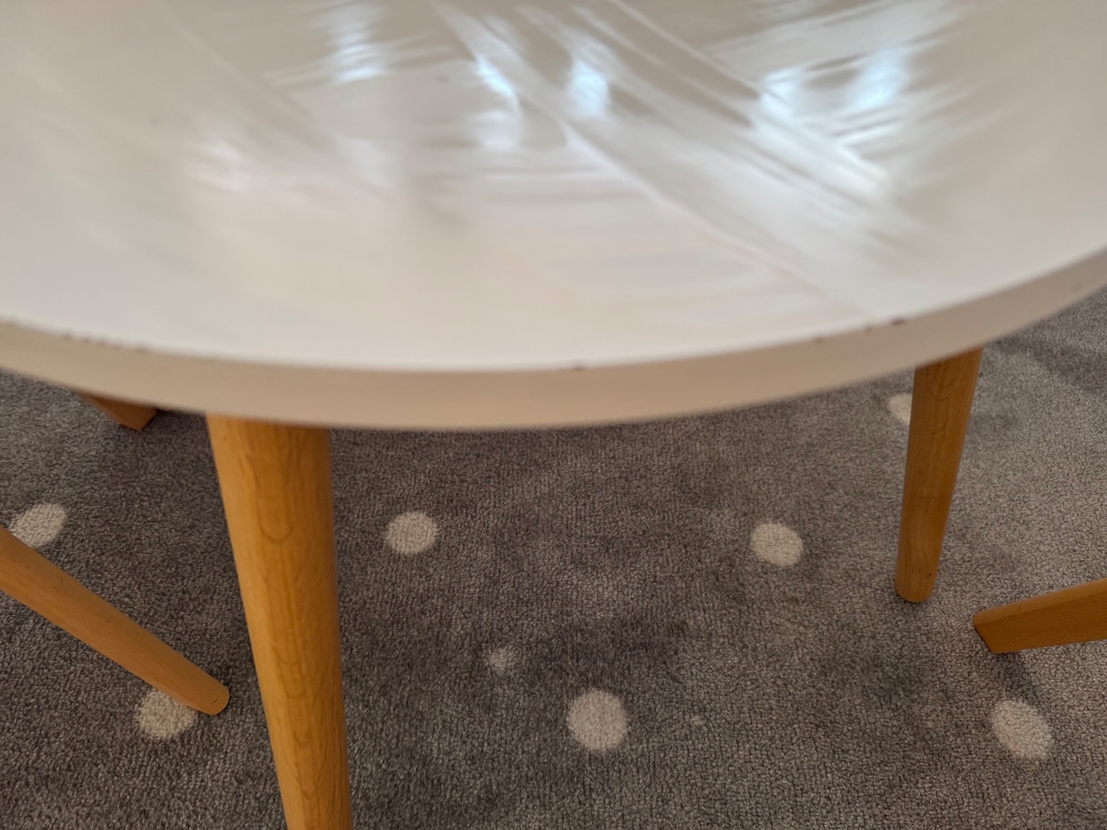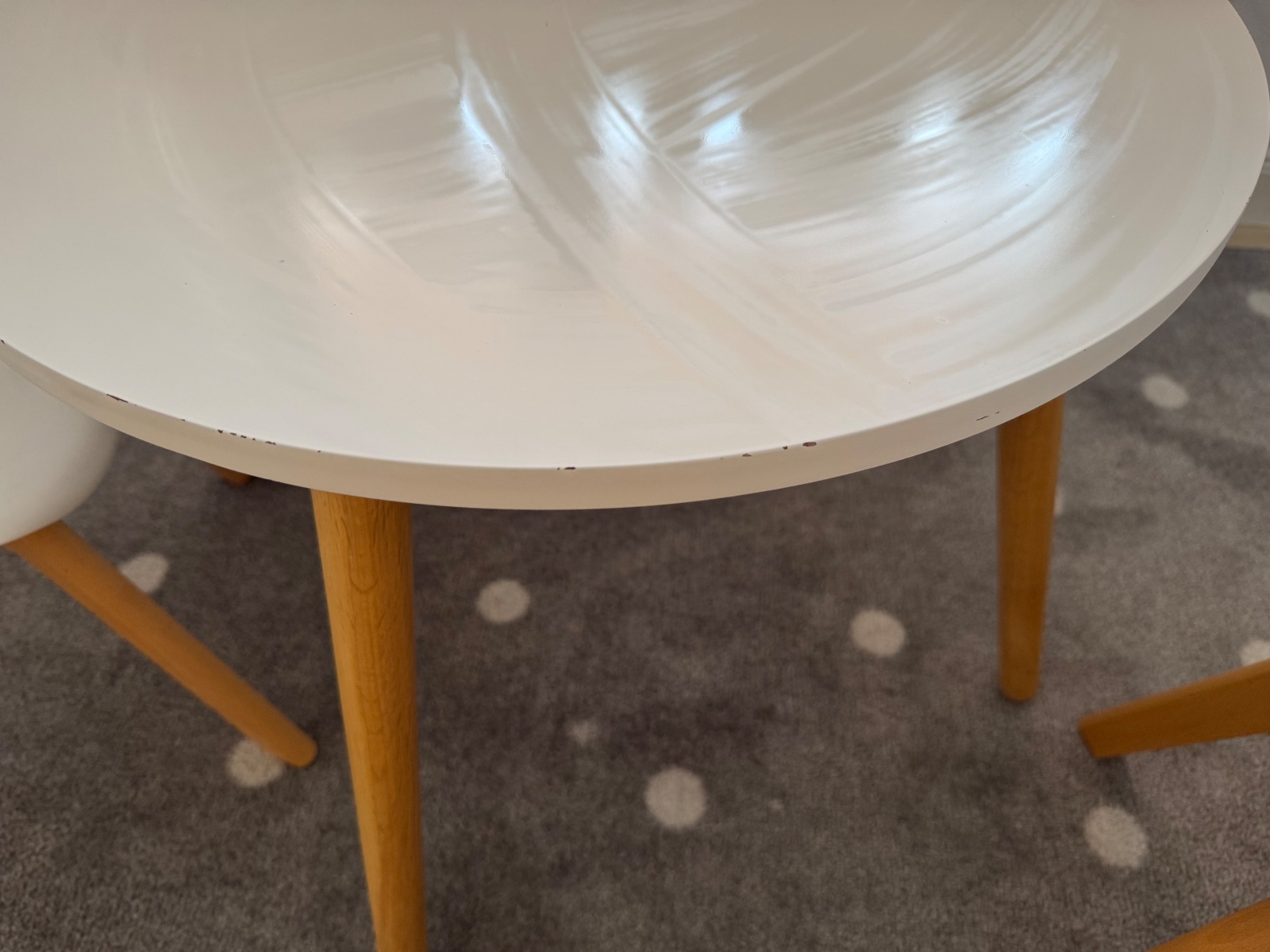 Stoličky v top stave, stôl má na hranách trošku ošuchnuté, nič hrozné. Zohľadnené v cene. Kupované v Mobelix. Uprednostňujem osobný odber Nitra okolie.