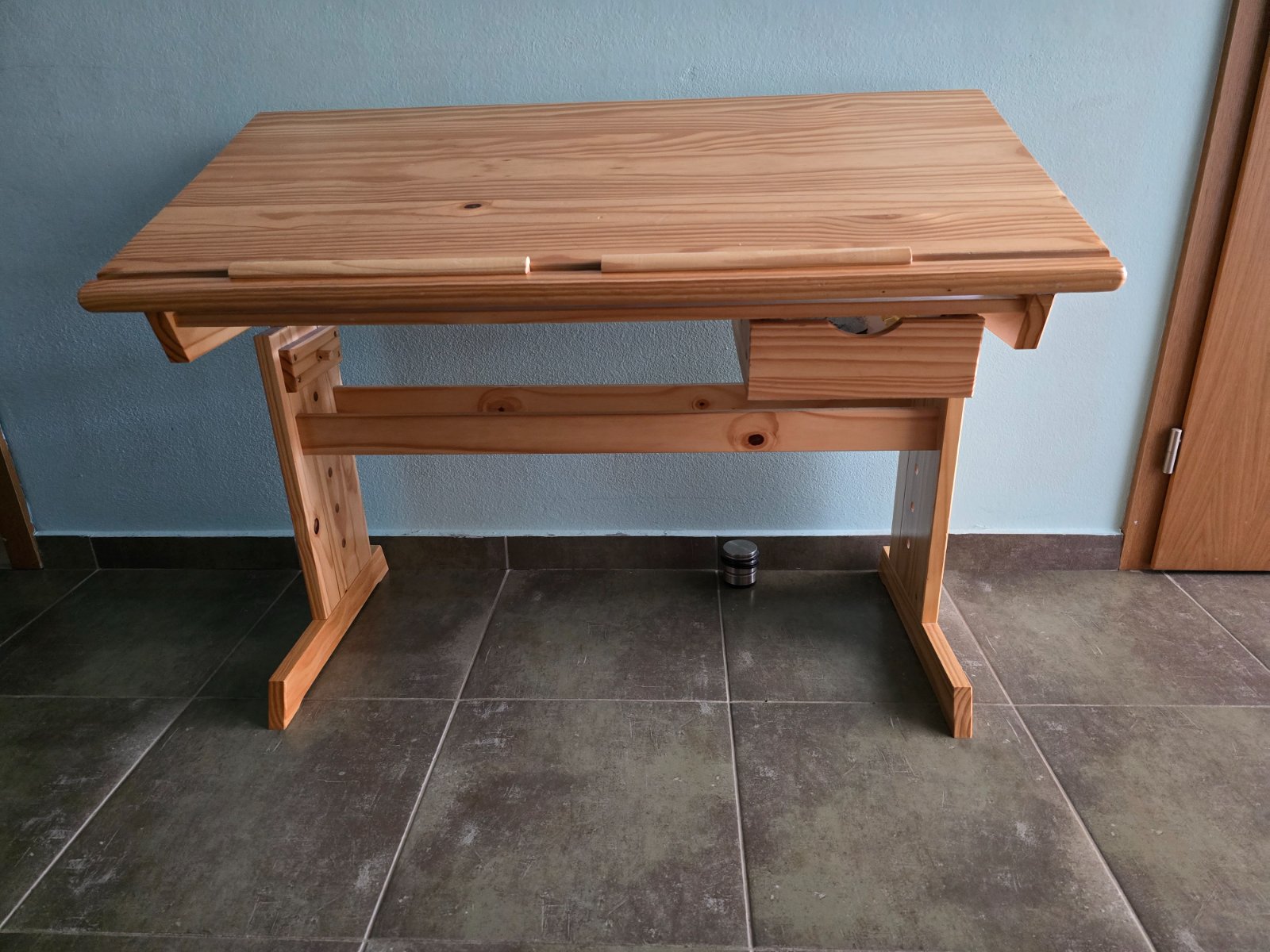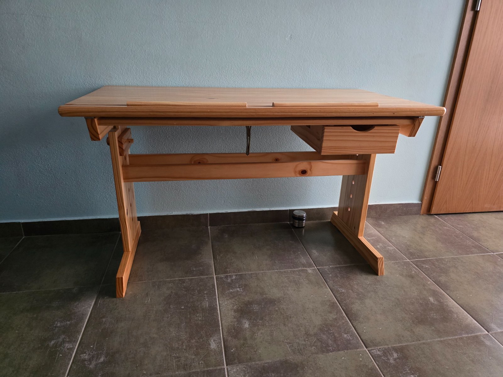 Písací stôl s nastavitelnou výškou od 64 cm. Doska 110 x 55 cm. Doska sa dá zdvihnúť a využiť na pohodlné kreslenie.