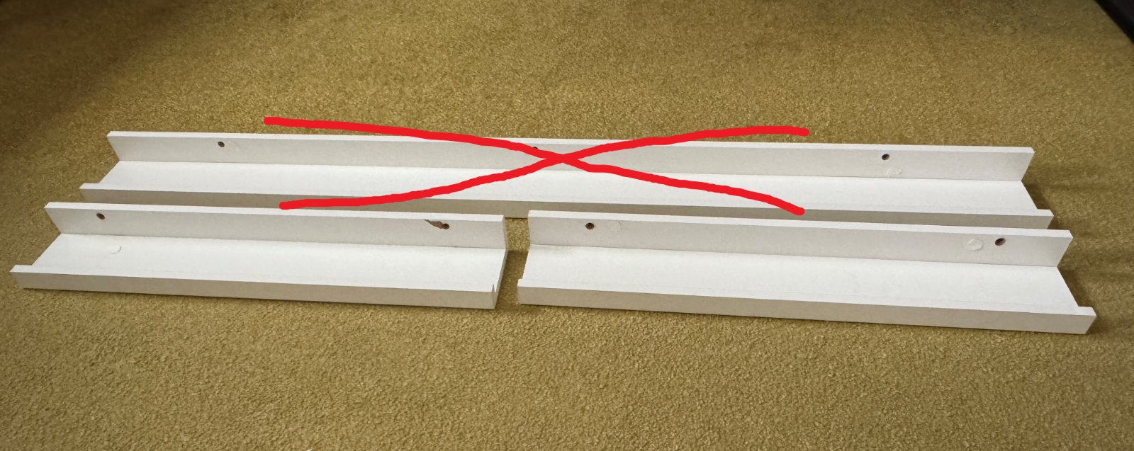 - 2 ks bielych policiek Ikea Ribba, rozmery 55x5 cm, hlbka 9,5 cm, cena 2 €/ks