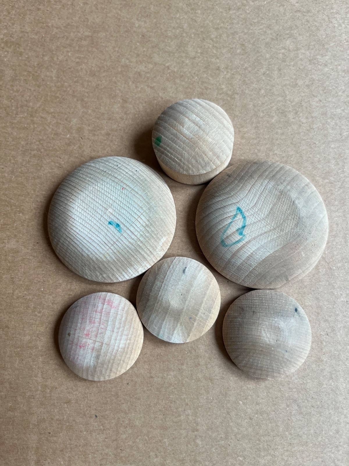 Drevene doplnky su uchytene na suchy zips, cca 6ks je popisanych fixkou, ostatne su vycistene.