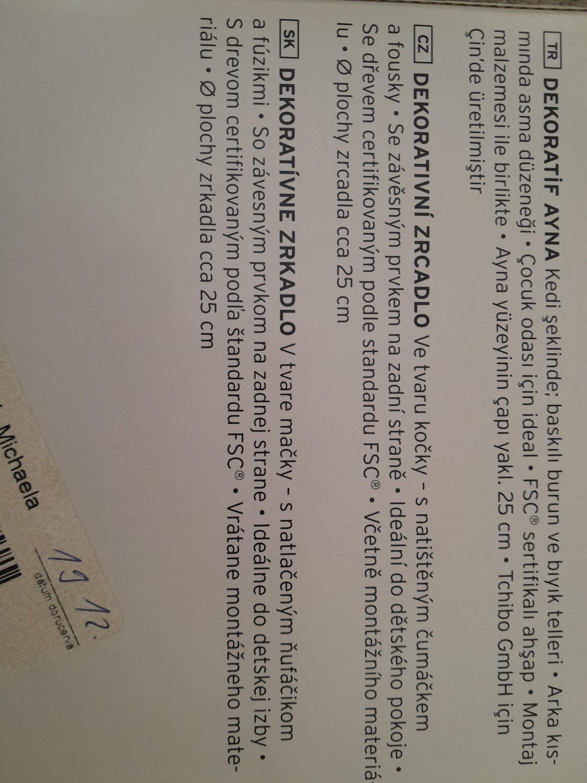Milé zrkadlo, pekne skrášli detsku izbu,kvalitne,zn.Tchibo,popis na krabici,aj s hmozdinami