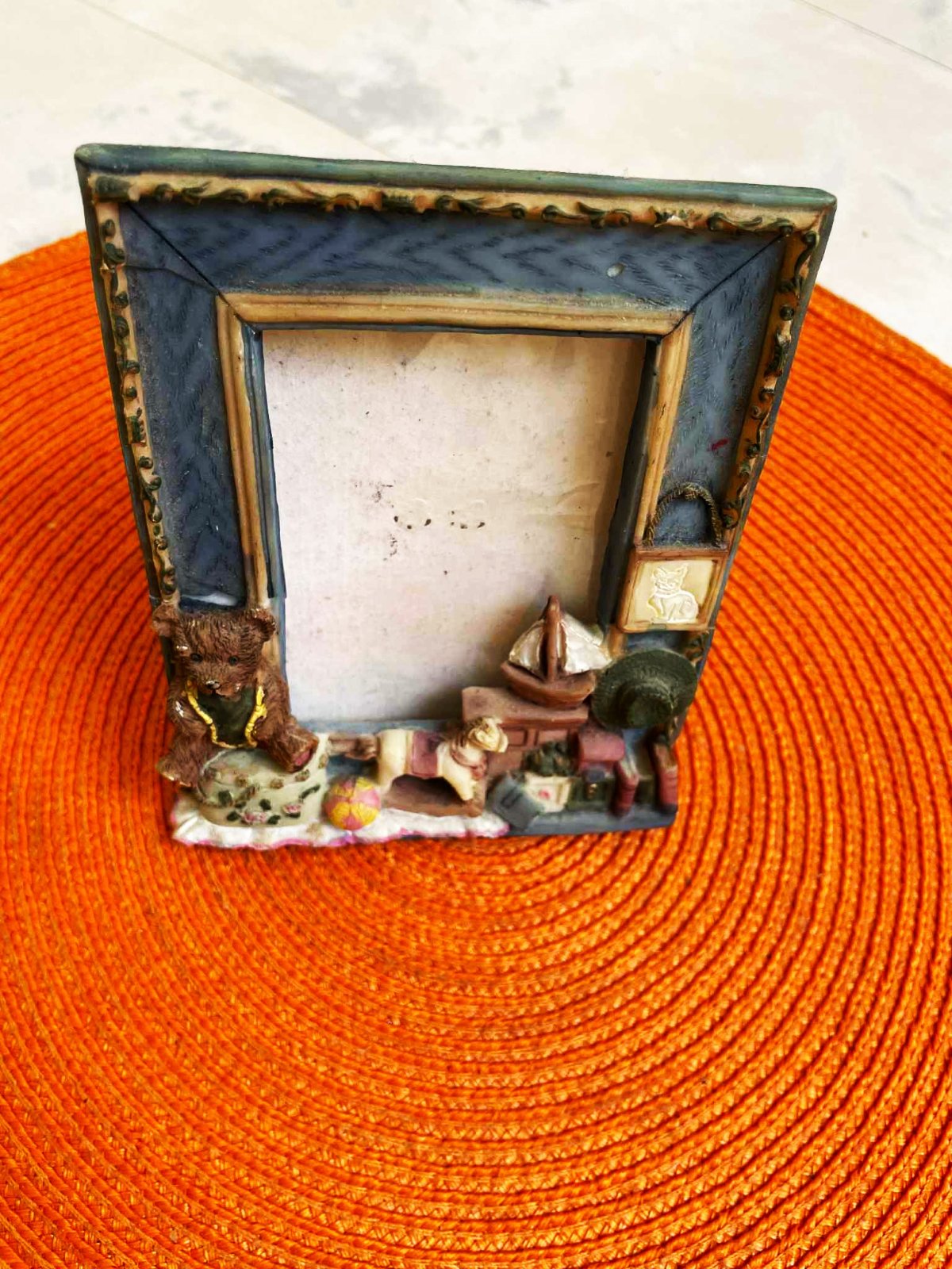starý rámik na foto,nad hlavou medvedíka je zlepený napevno,ale nie je to vôbec vidno,a tiež v pravo rohu hore,10 x 12 cm