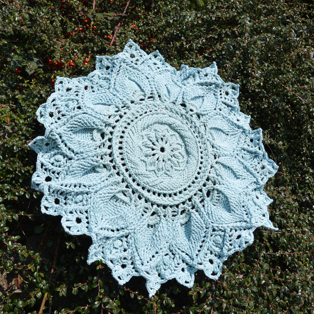 Ponúkam háčkovaný, dekoračký koberček do detskej izbyčky s priemerom cca 74cm.