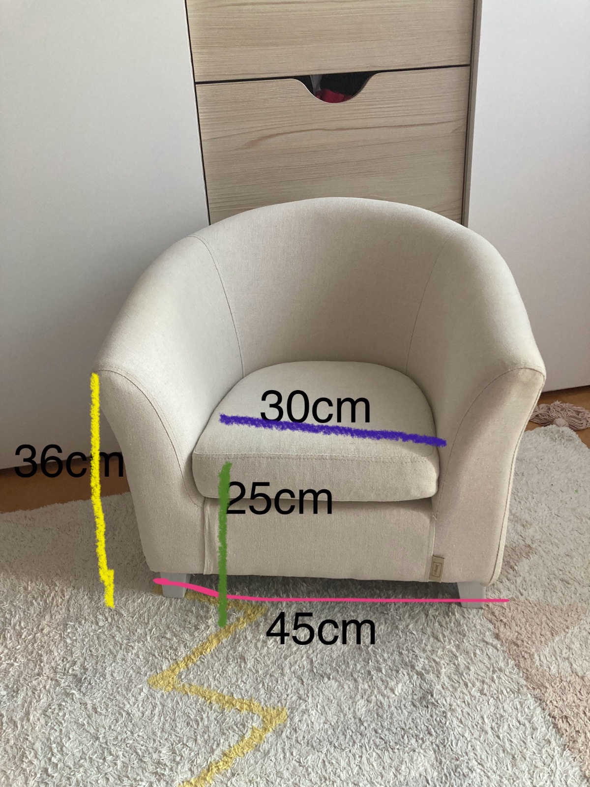 Ponukam na predaj detske kreslo v béžovej farbe. Je čerstvo vytepované a pripravené pre nového majiteľa. Veľmi pekný dizajn. Nemá žiadne poškodenia. Mám k nemu aj originál krabicu. Rozmery vid foto.