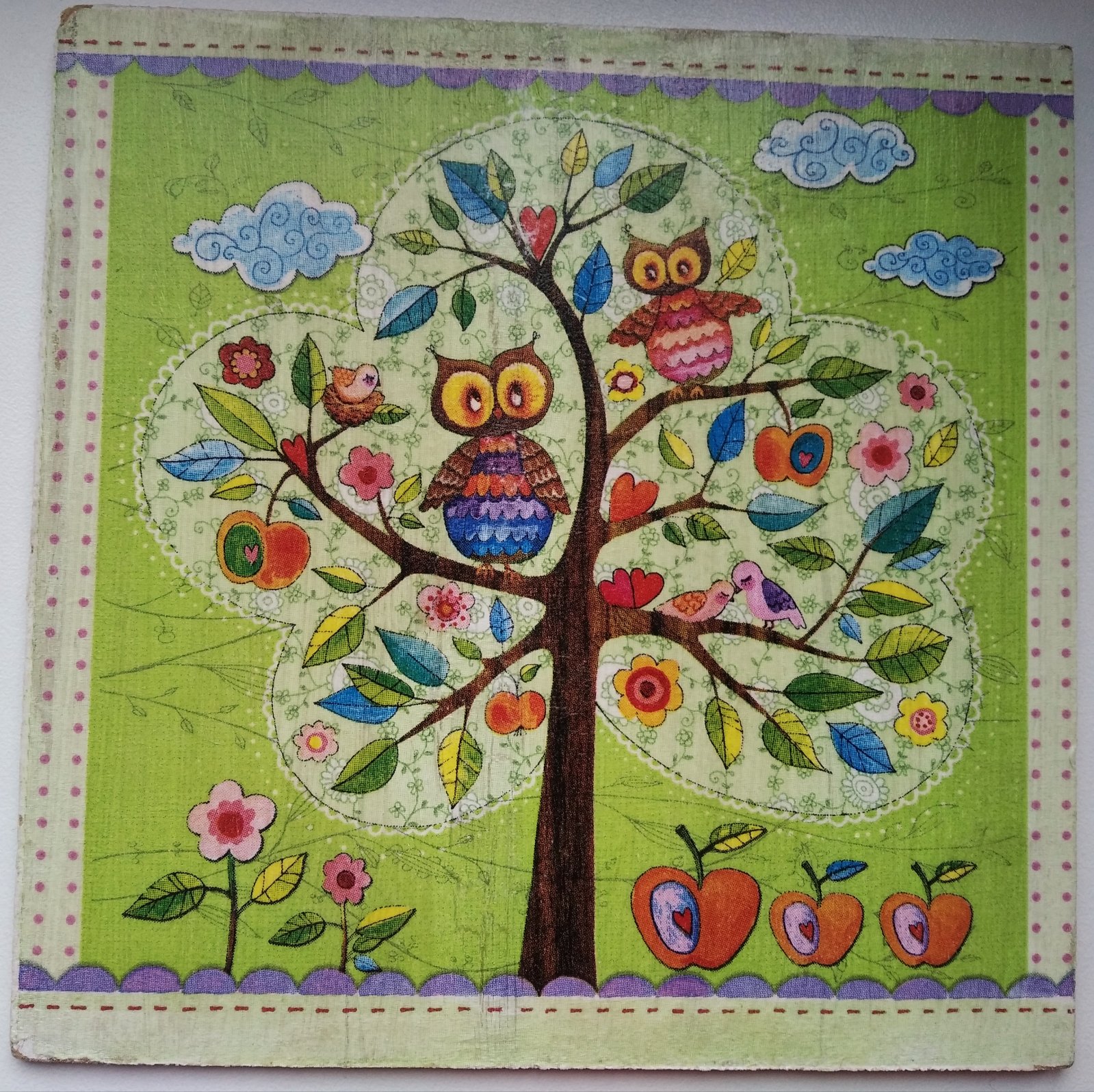 Milý a veselý obrázok vhodný do detskej izby, alebo hocikde inde pre radosť. Dá sa oprieť, nie je tam očko na zavesenie.