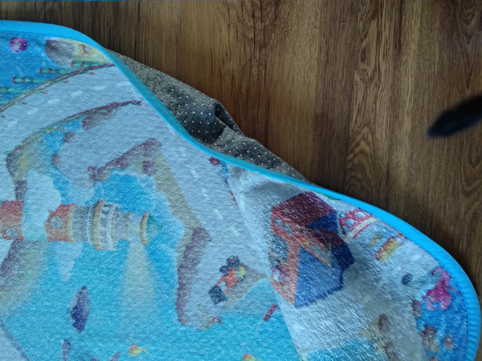 Tenký, ľahko rozložiteľný, prateľný v práčke. Poslúži aj pri posteli, aby neboli deti pri sedení na studenom na boso na studenom. Rozmer je 150 x 100 cm