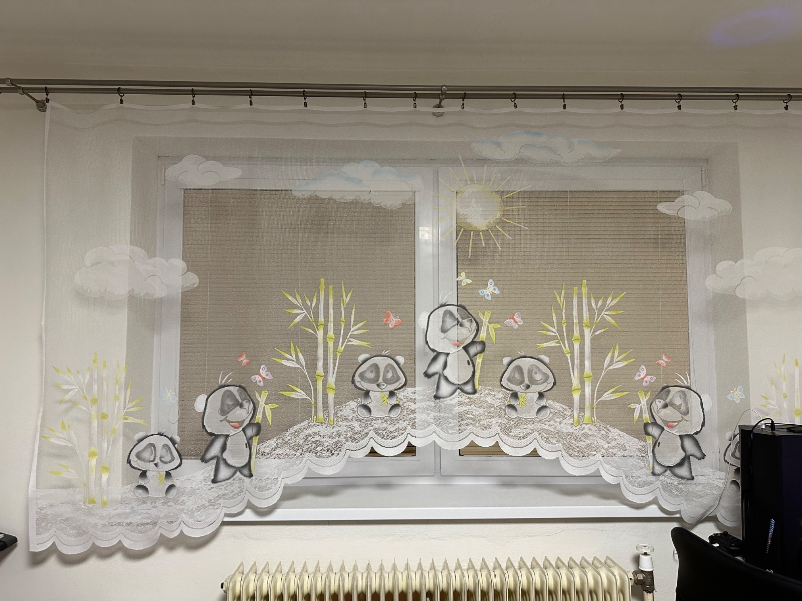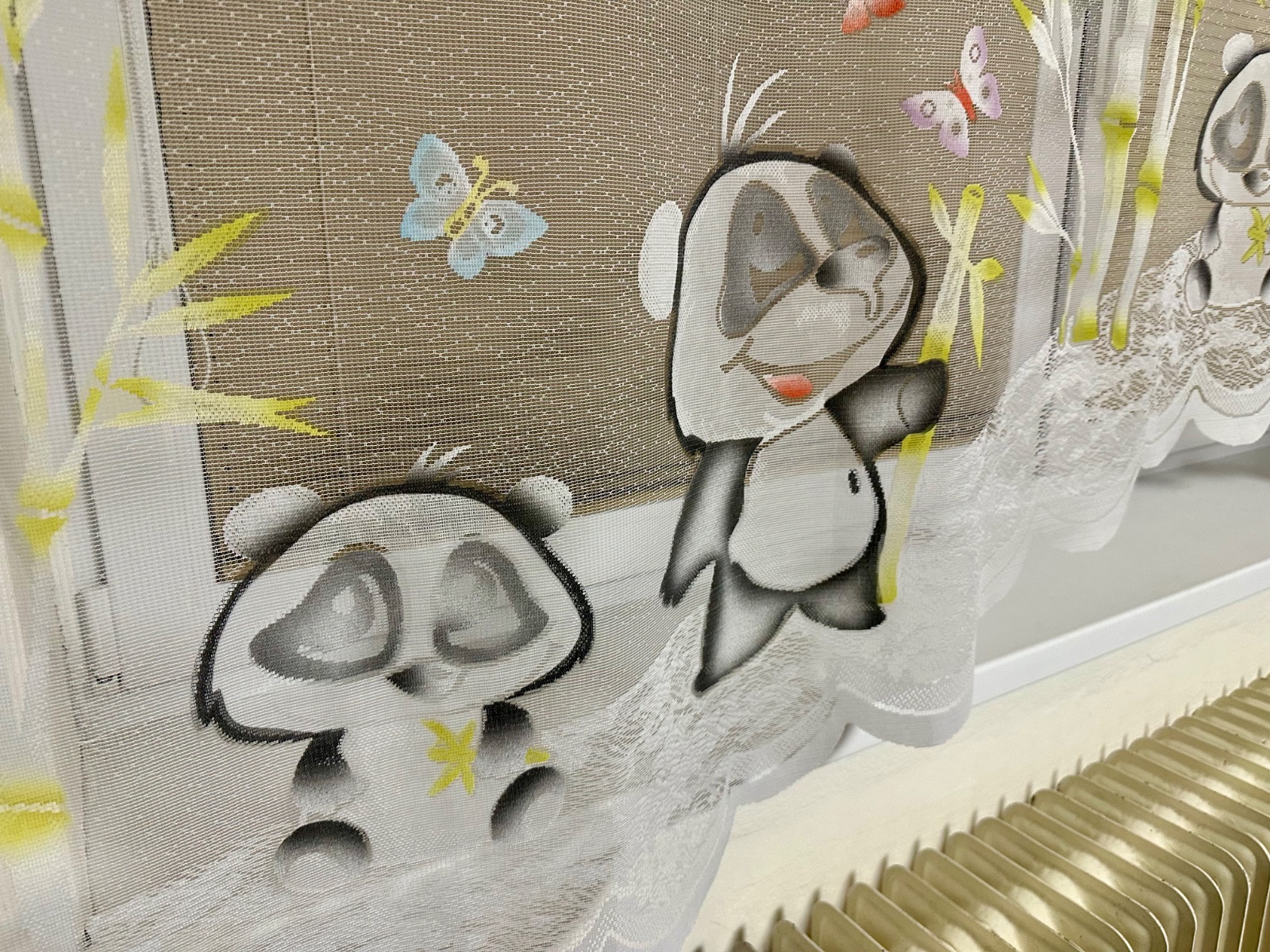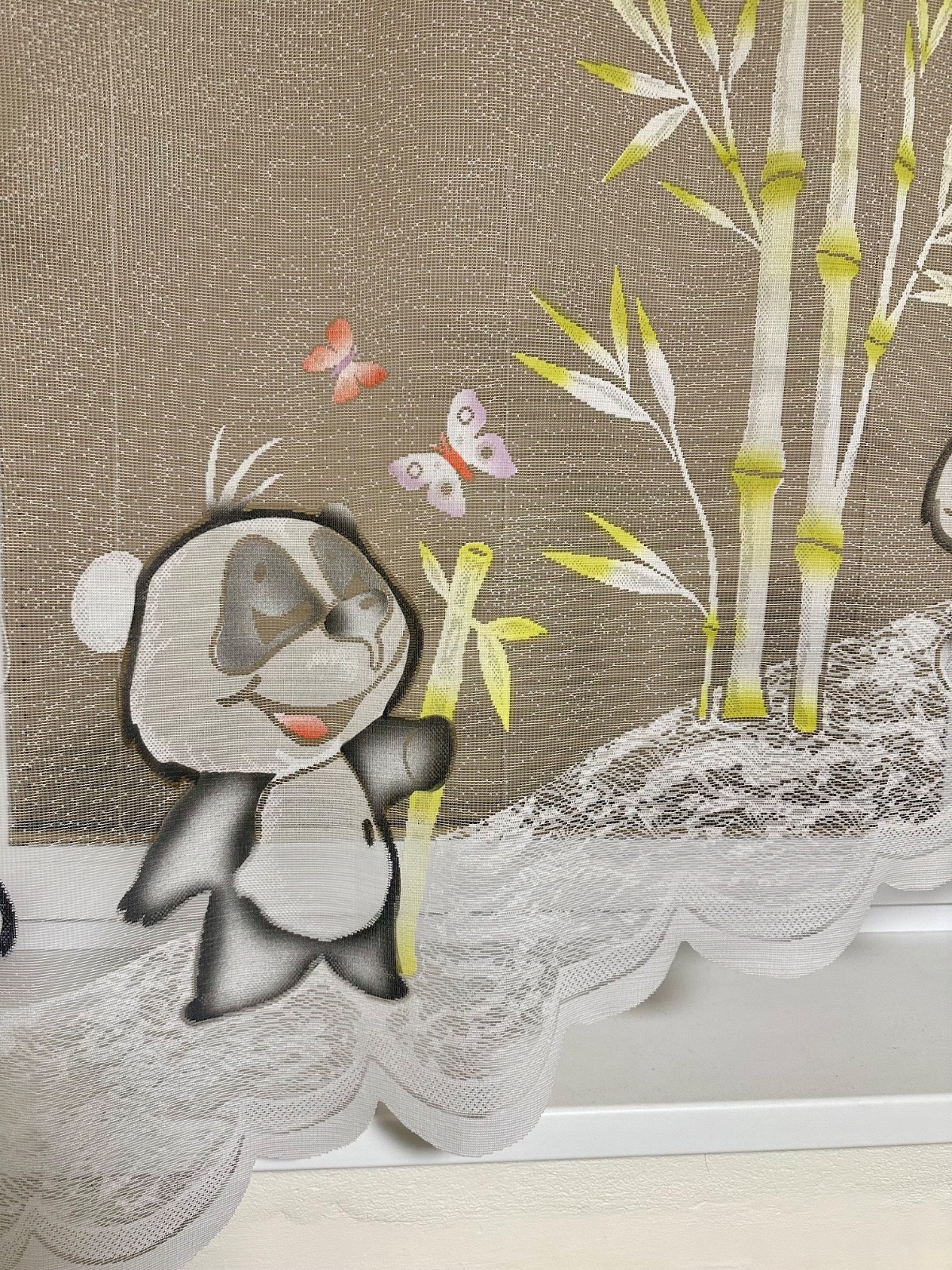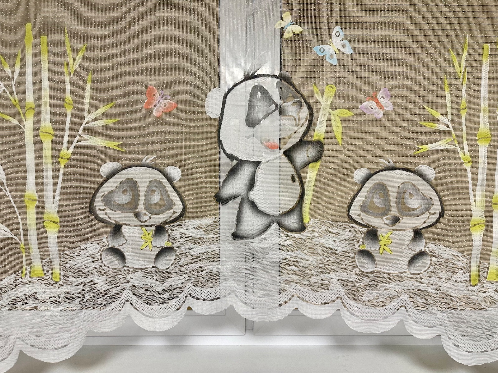 Predám novú milú záclonu do detskej izby s pandami. Top stav. Šírka je 3 metre, výška na boku 157 cm, v strede 122 cm.