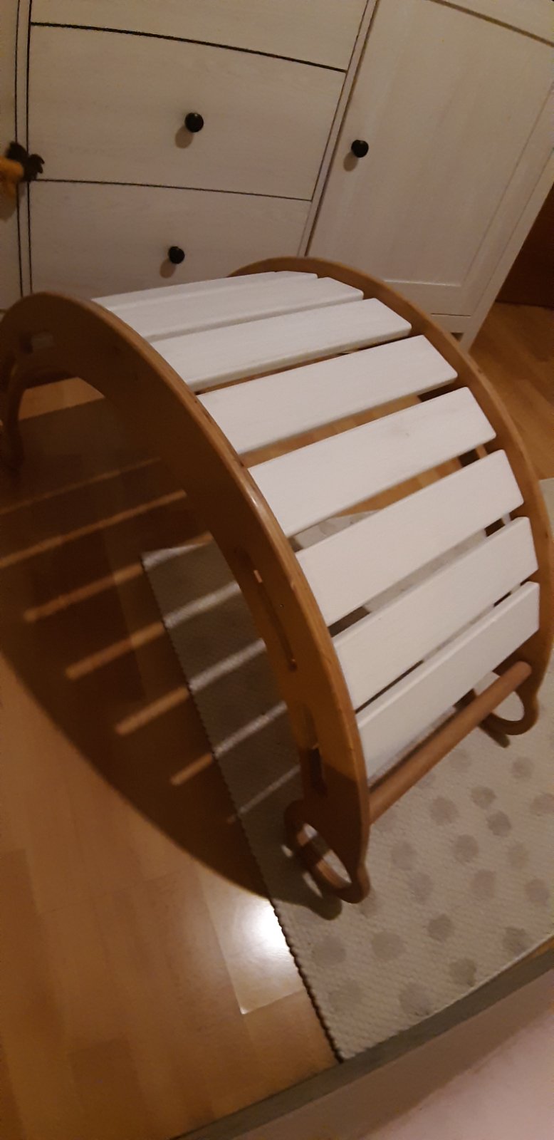 Kvalitná drevená hojdačka s bežným opotrebením./natretá nezavadným moridlom a ošetrená voskom. PC 85 eur.
