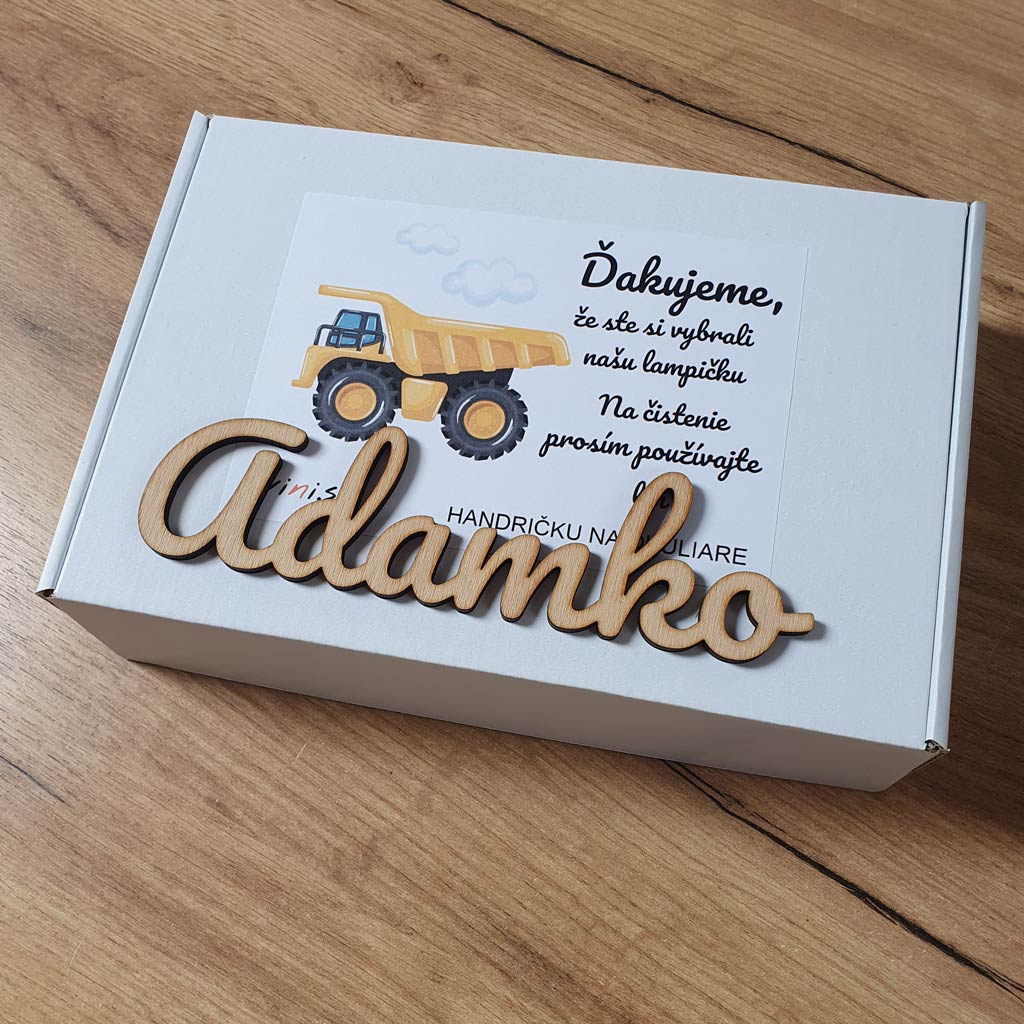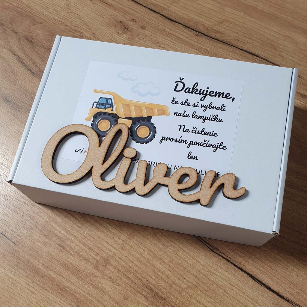 Meno dieťatka napíšte do políčka pri výrobku. Ak si prajete pridať venovanie aj na drevený podstavec lampičky, tak stačí označiť možnosť (Gravírovanie na podstavec + 5 €) a napísať želaný text. Po prijatí objednávky Vám pošleme na email meno aj Váš text vo viacerých typoch písma na výber.
