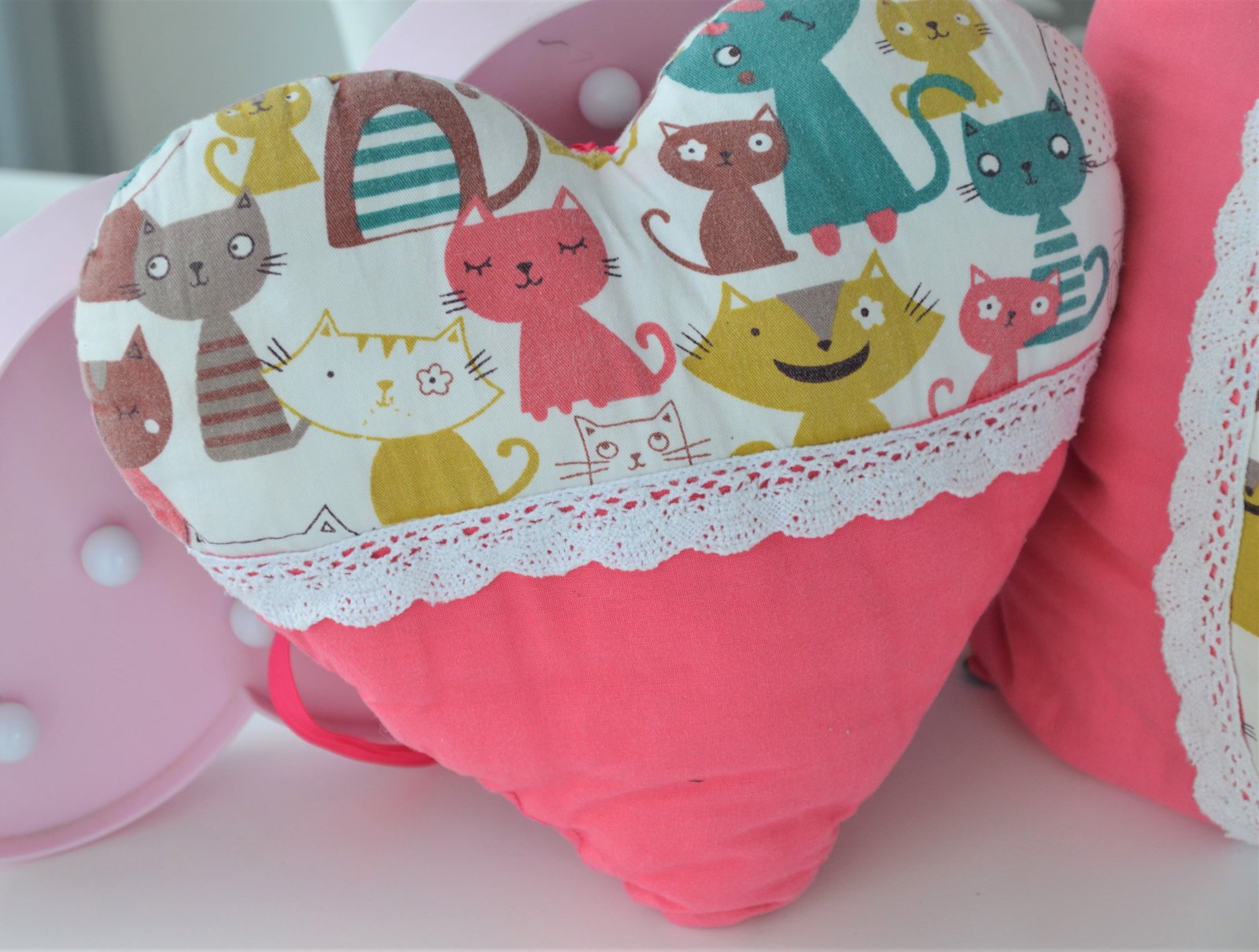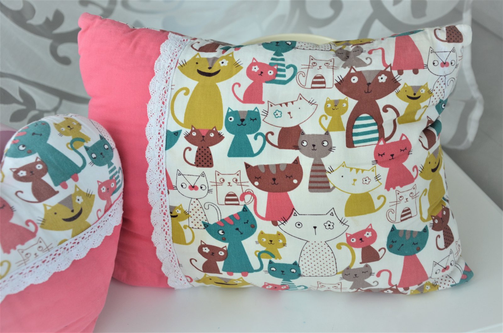 Vankúš+závesné srdiečko s mačičkami