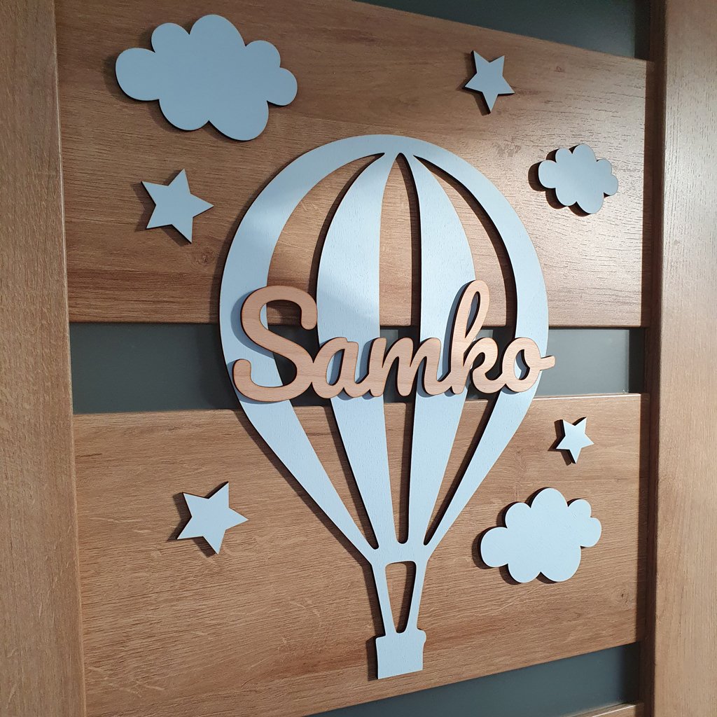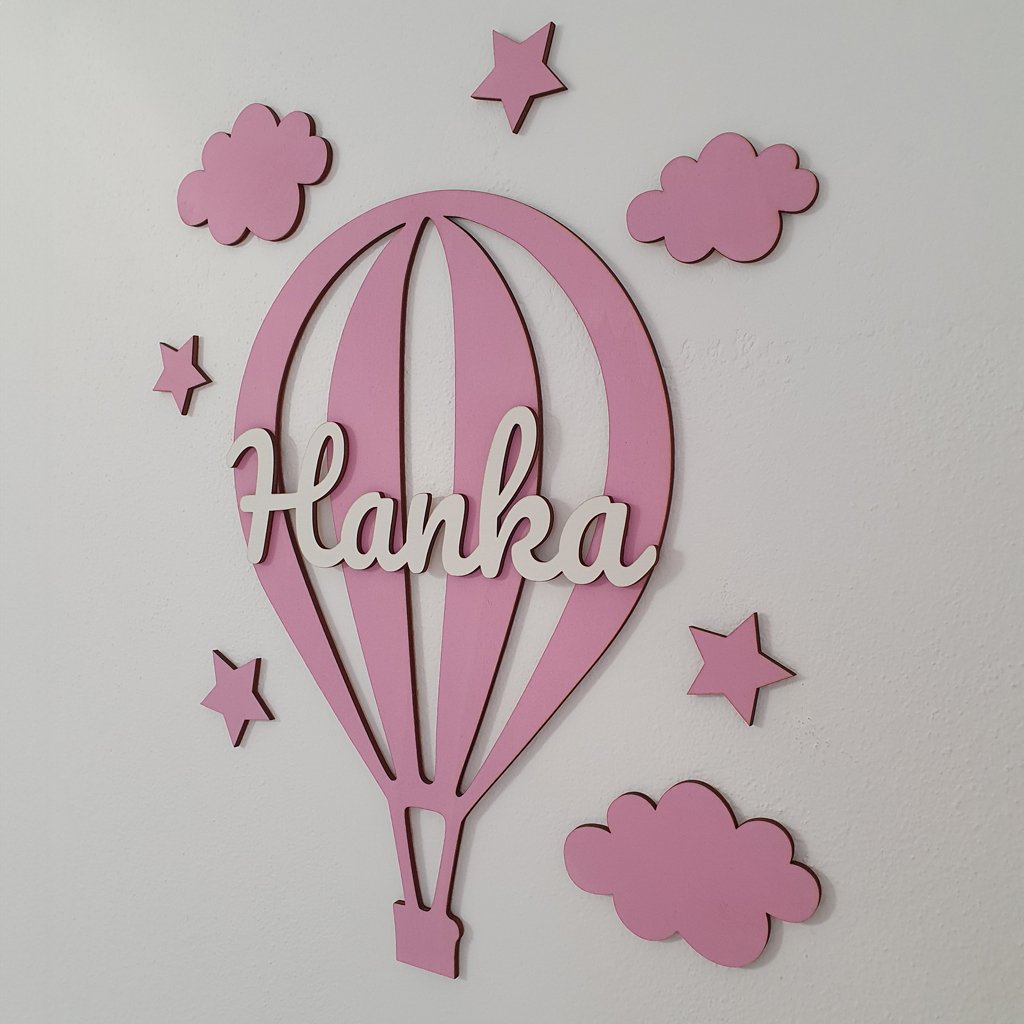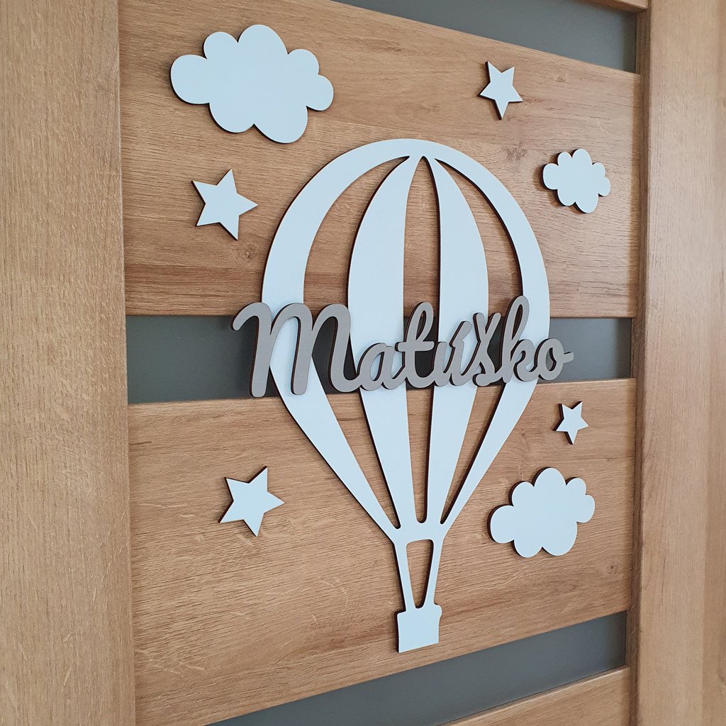 Drevená dekorácia Lietajúci balón s menom