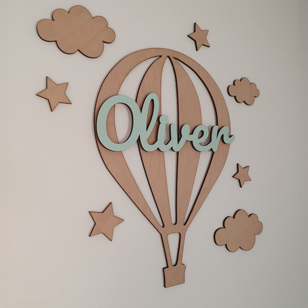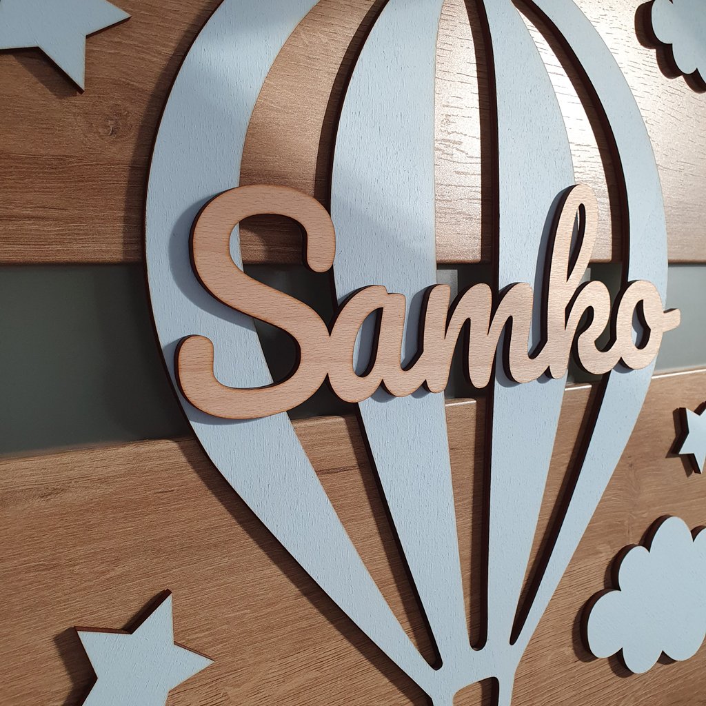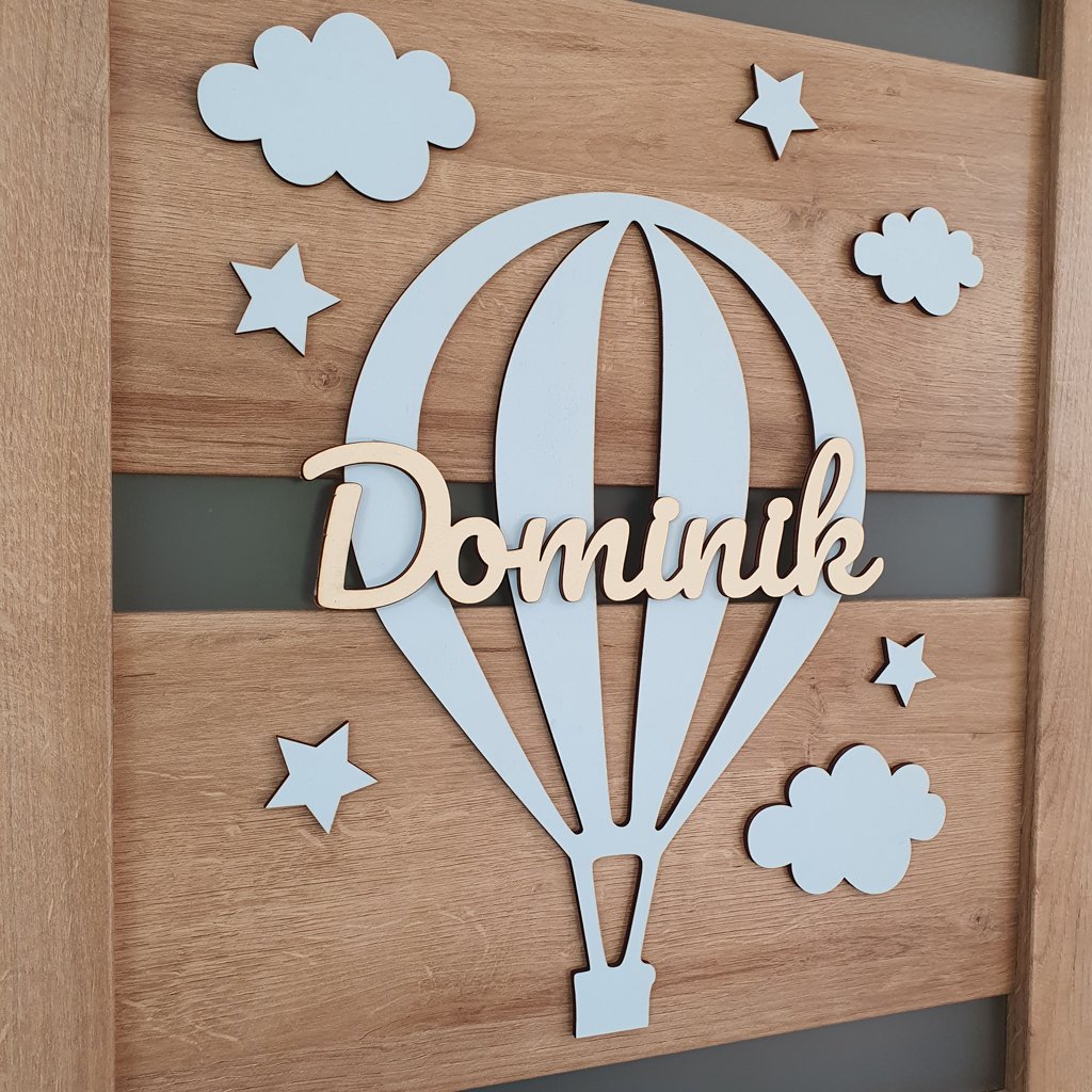 Drevená dekorácia Lietajúci balón s menom