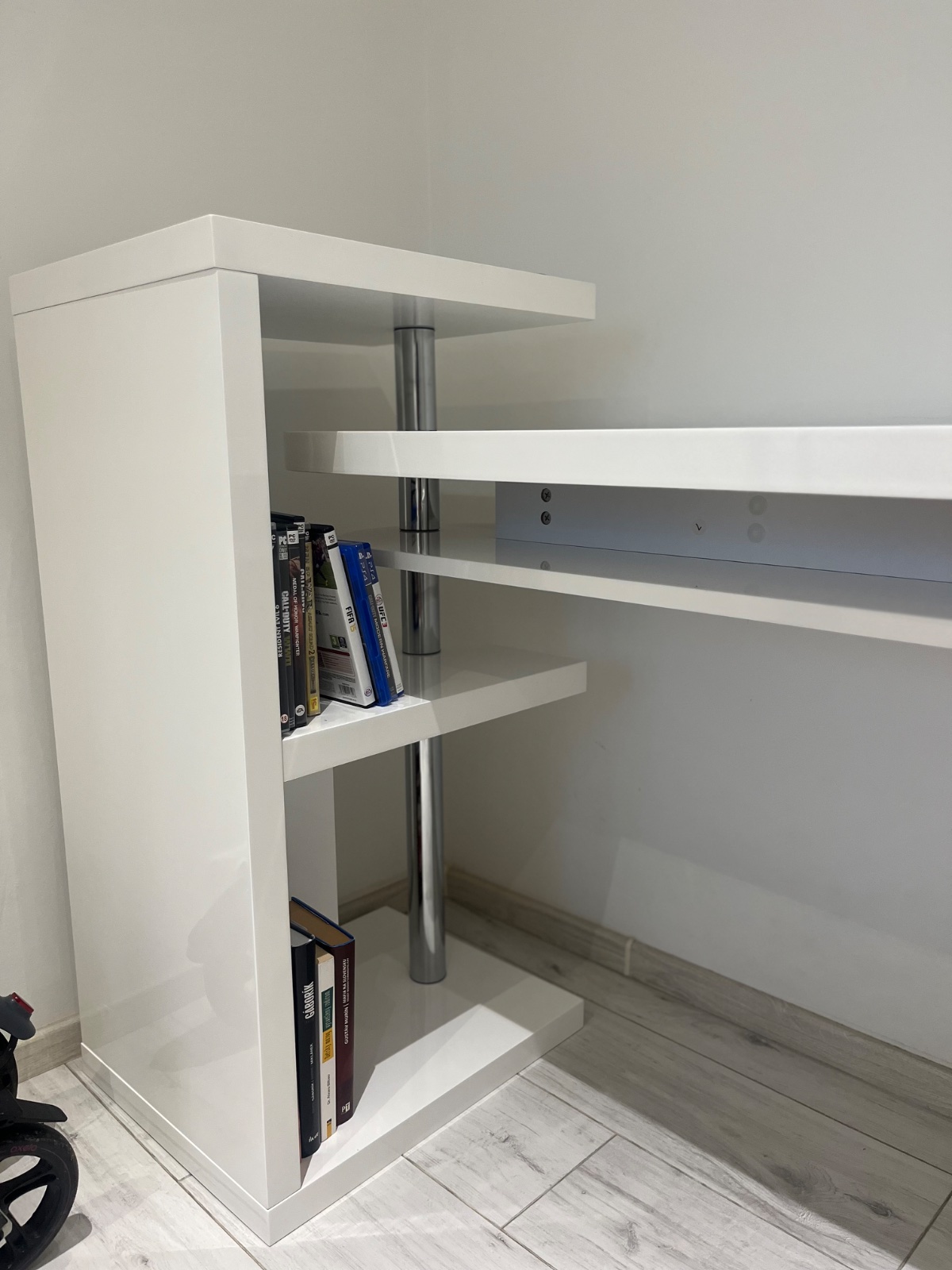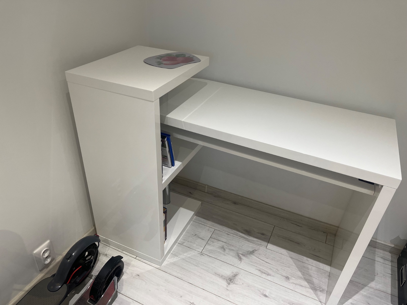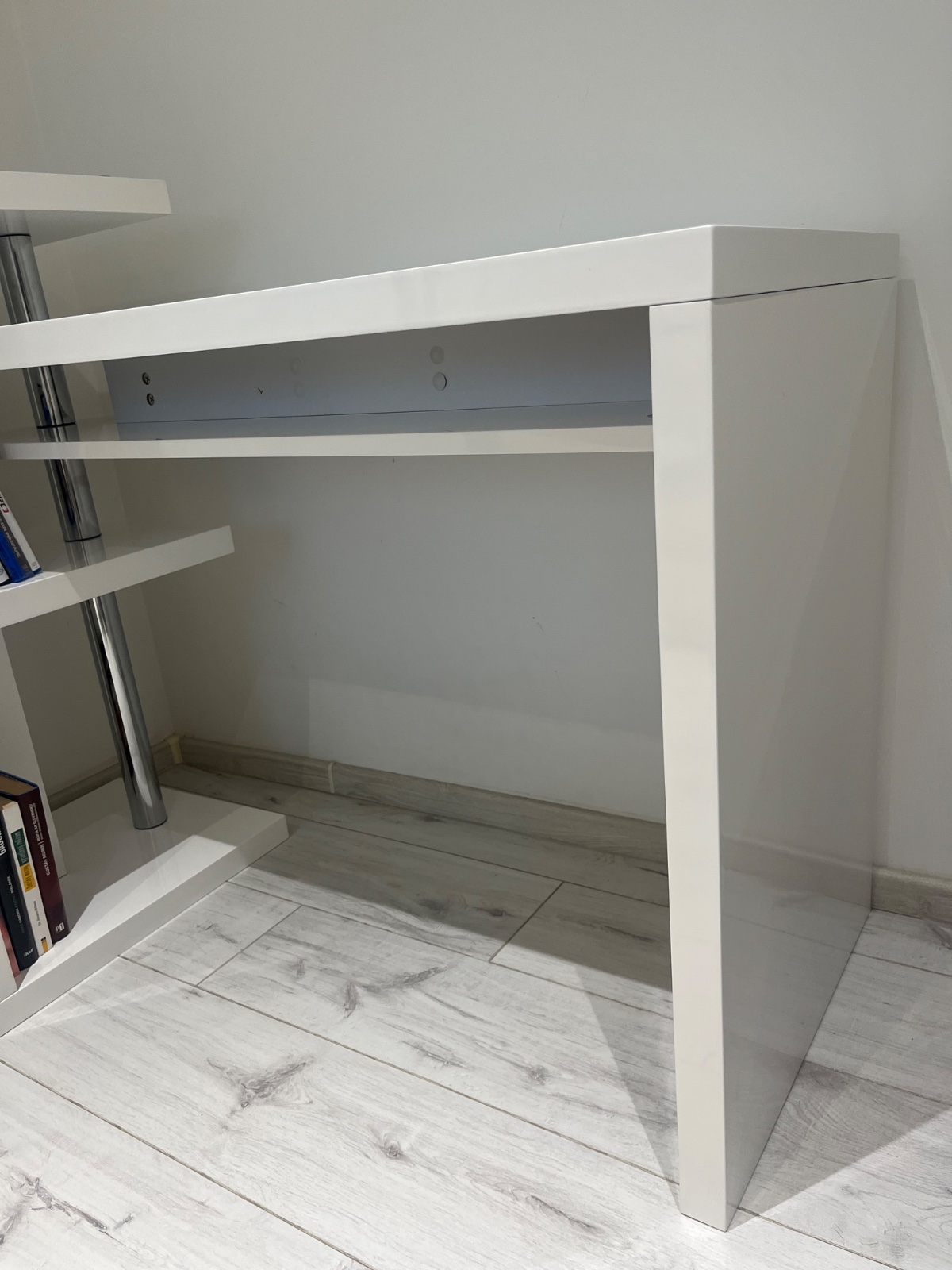 Predám stôl vhodný do pracovne alebo studentskej izby v prevedení biely lesk . Skladá sa z dvoch časti -jedna je vyvysena -určená napr.na umiestnenie monitora .