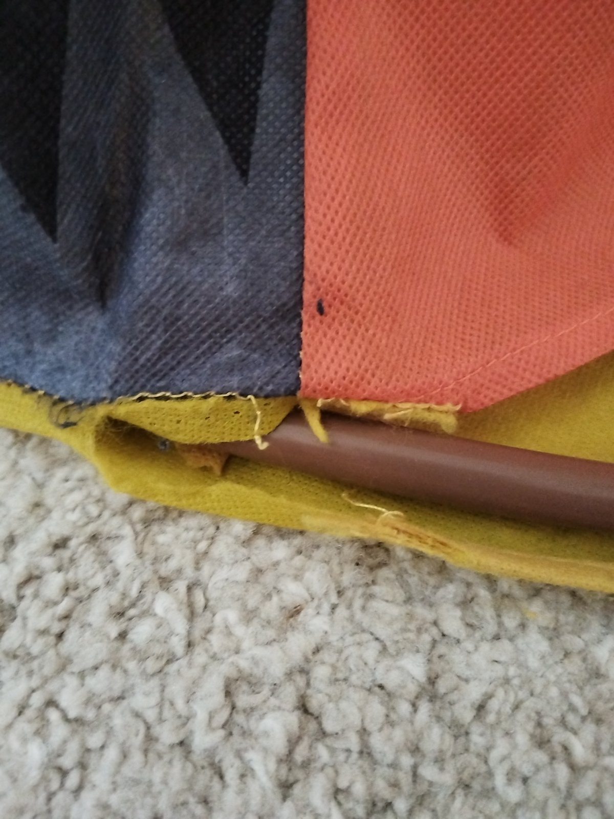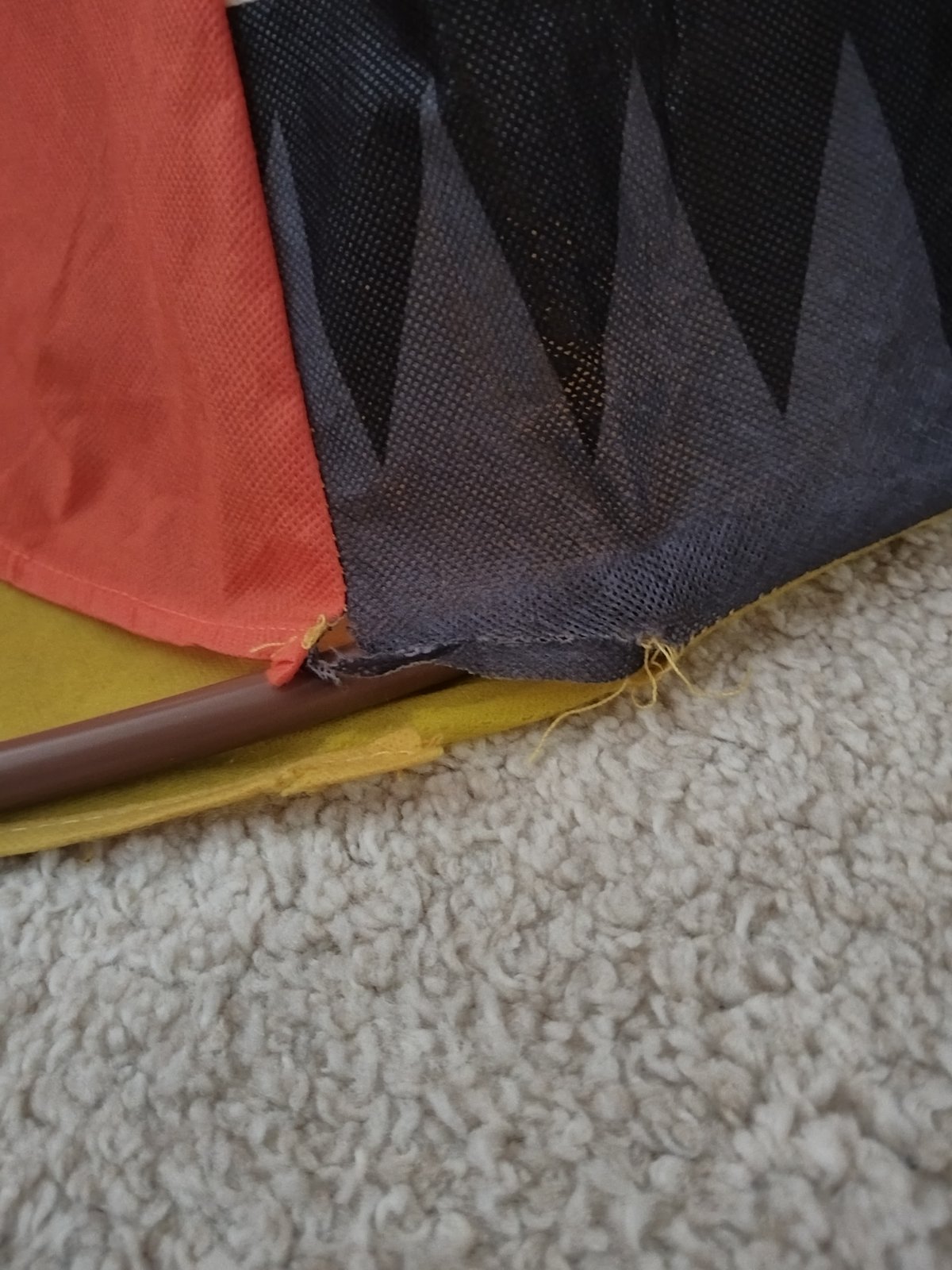 Závady, viď foto - Jedna tyč je ohnutá ale nebráni to v používaný, tiež z oboch strán vo vchode do teepee je kúsok vyparany, zohľadnené v cene.
