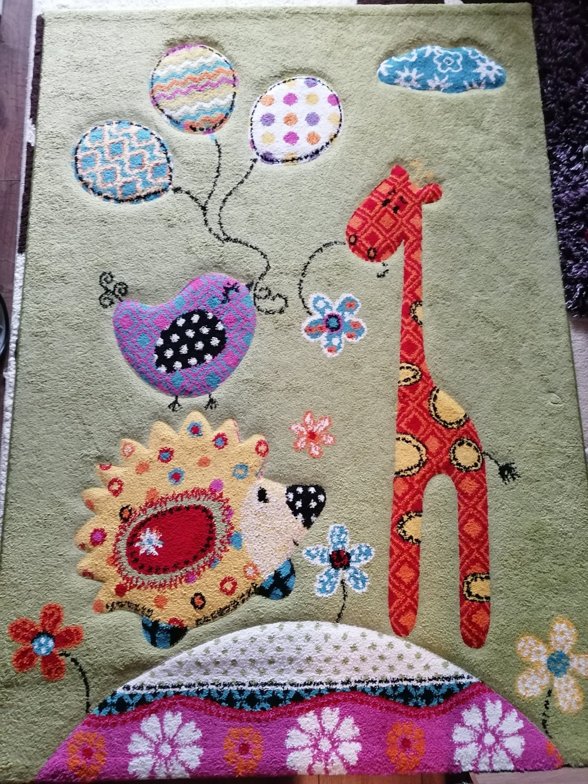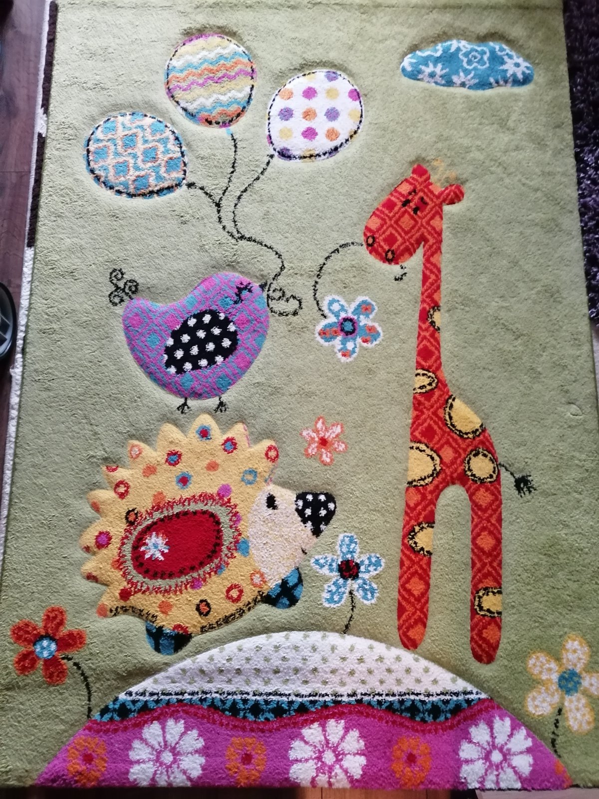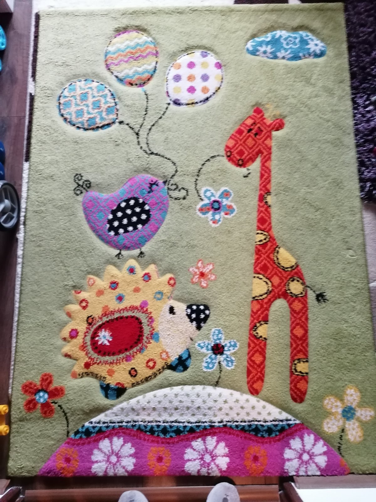 Posuniem náš koberec z detskej izbičky, krásny a naozaj kvalitný, husto tkaný s vyrezávaný vzorom, veľmi dobre udrziavatelny, lahucko išli dole z neho aj prípadné zaspinenia. Bol raz pretepovany davnejsie, je veľmi pekný, šetrne používaný bez nejakého znečistenia. U nás skrašloval dievčenskú izbicku. Rozmer 120x170cm.