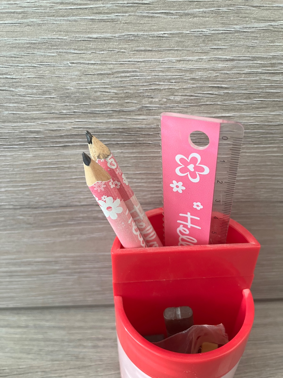 🩷stojan + 2 ks pevne a hrubé ceruzky + pravítko