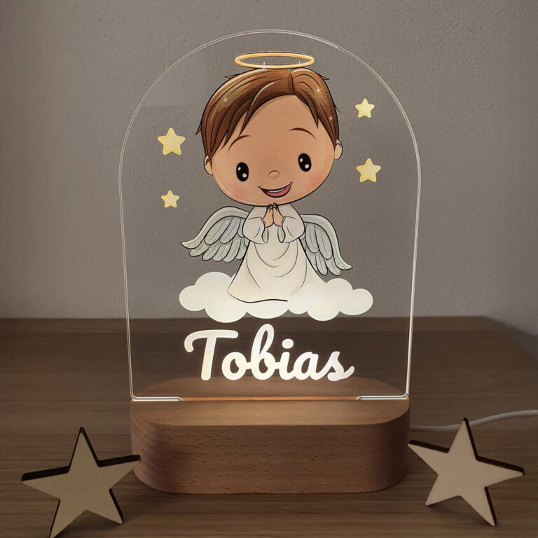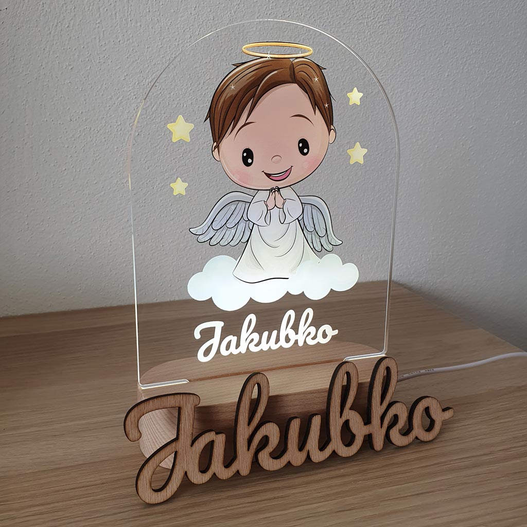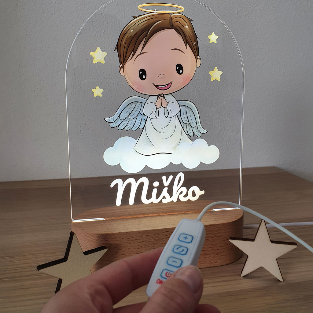 LED nočná lampa s vlastným menom dieťatka a motívom anjelika rozžiari nielen detskú izbičku, ale aj očká detí. Je to tiež ideálny darček k narodeniu dieťatka, na krstiny, narodeniny, či meniny.