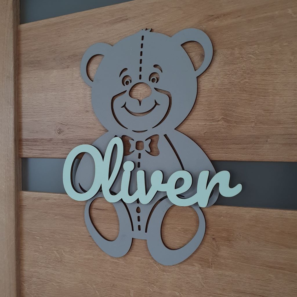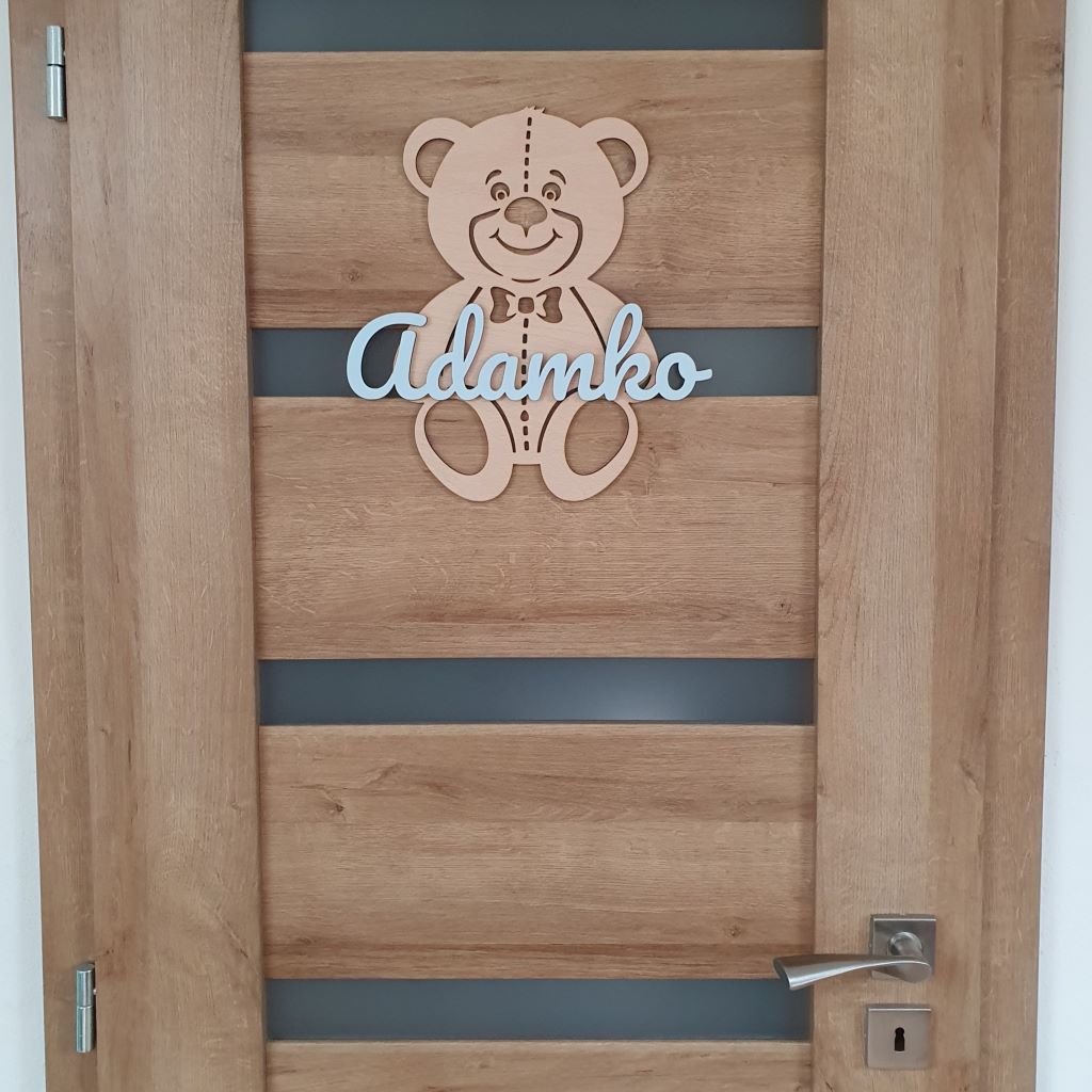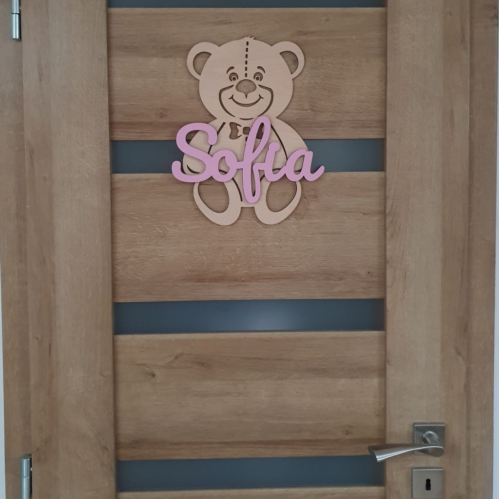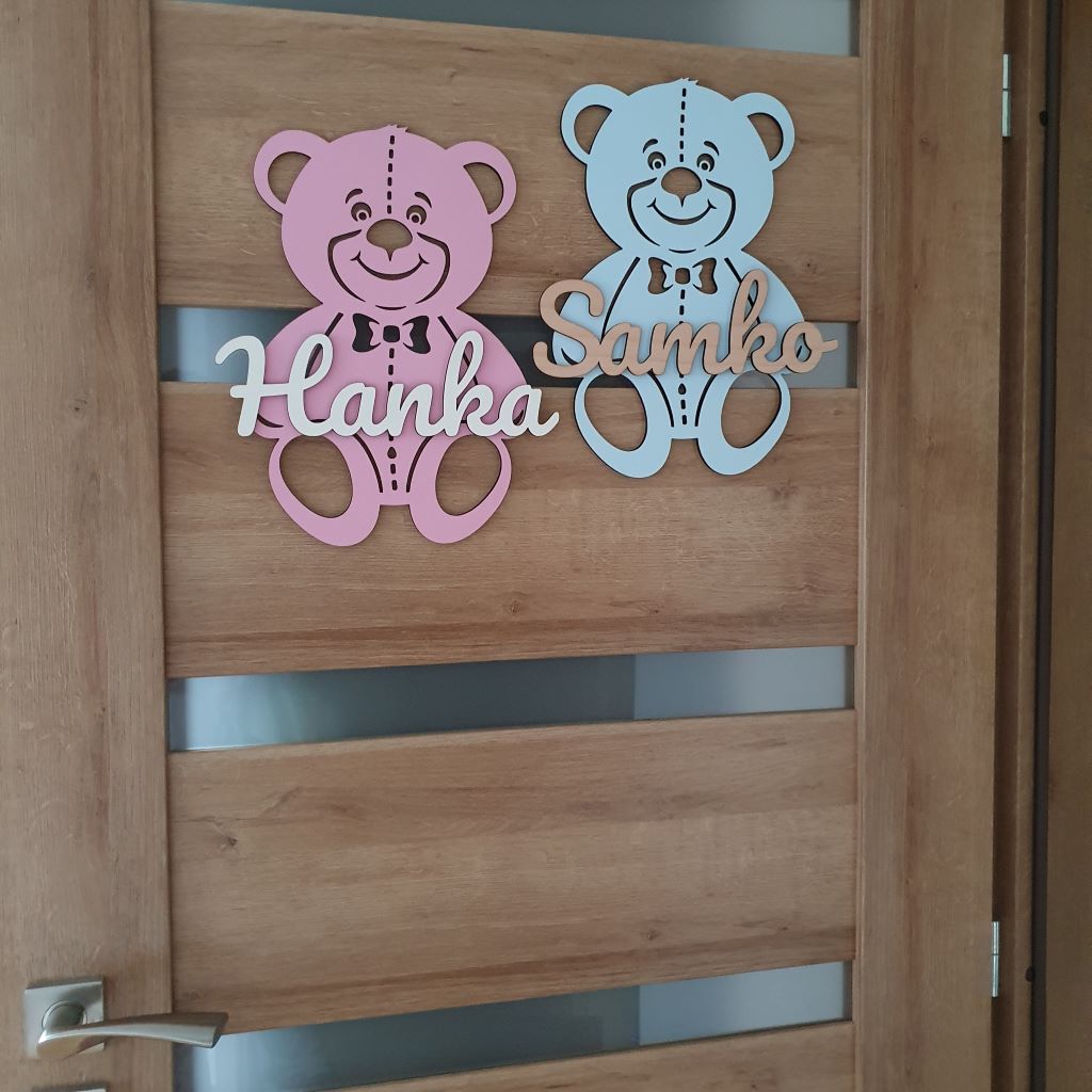 Drevená dekorácia macko s vlastným menom ozdobí každé dvere či interiér detskej izby. Môžete ho tiež pripevniť na stenu a stane sa tak obľúbeným doplnkom, ktorý zútulní každú detskú izbu a dodá jej jedinečnú atmosféru. Vďaka širokému výberu farebných kombinácii ju ľahko zladíte k farbe steny a k nábytku v detskej izbe. Je to ideálny darček pre dievčatko aj pre chlapčeka a tiež k narodeniu dieťatka, na krstiny, narodeniny, či meniny.
