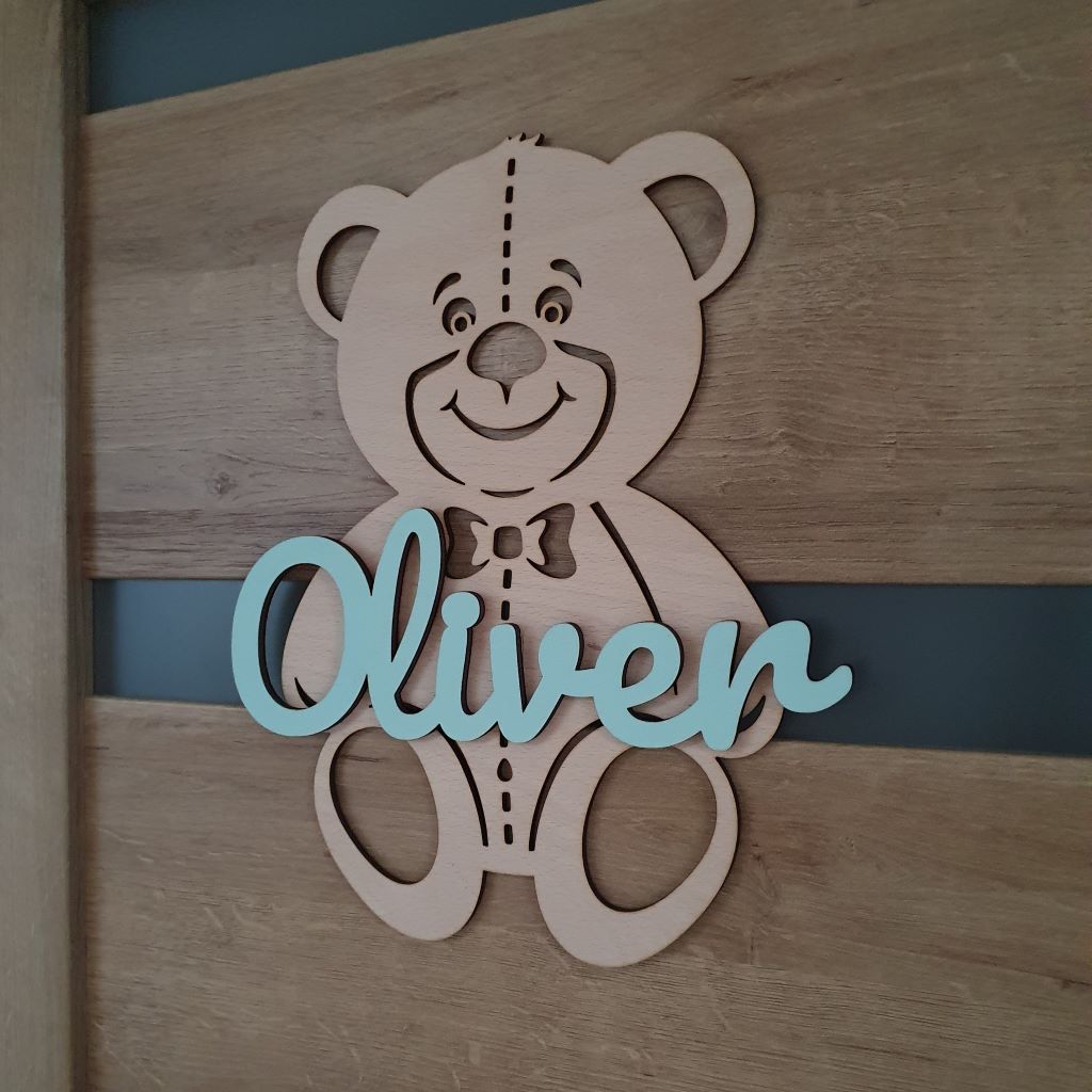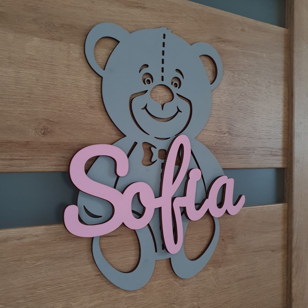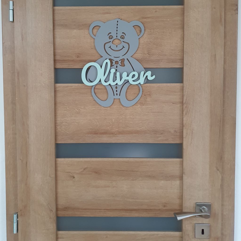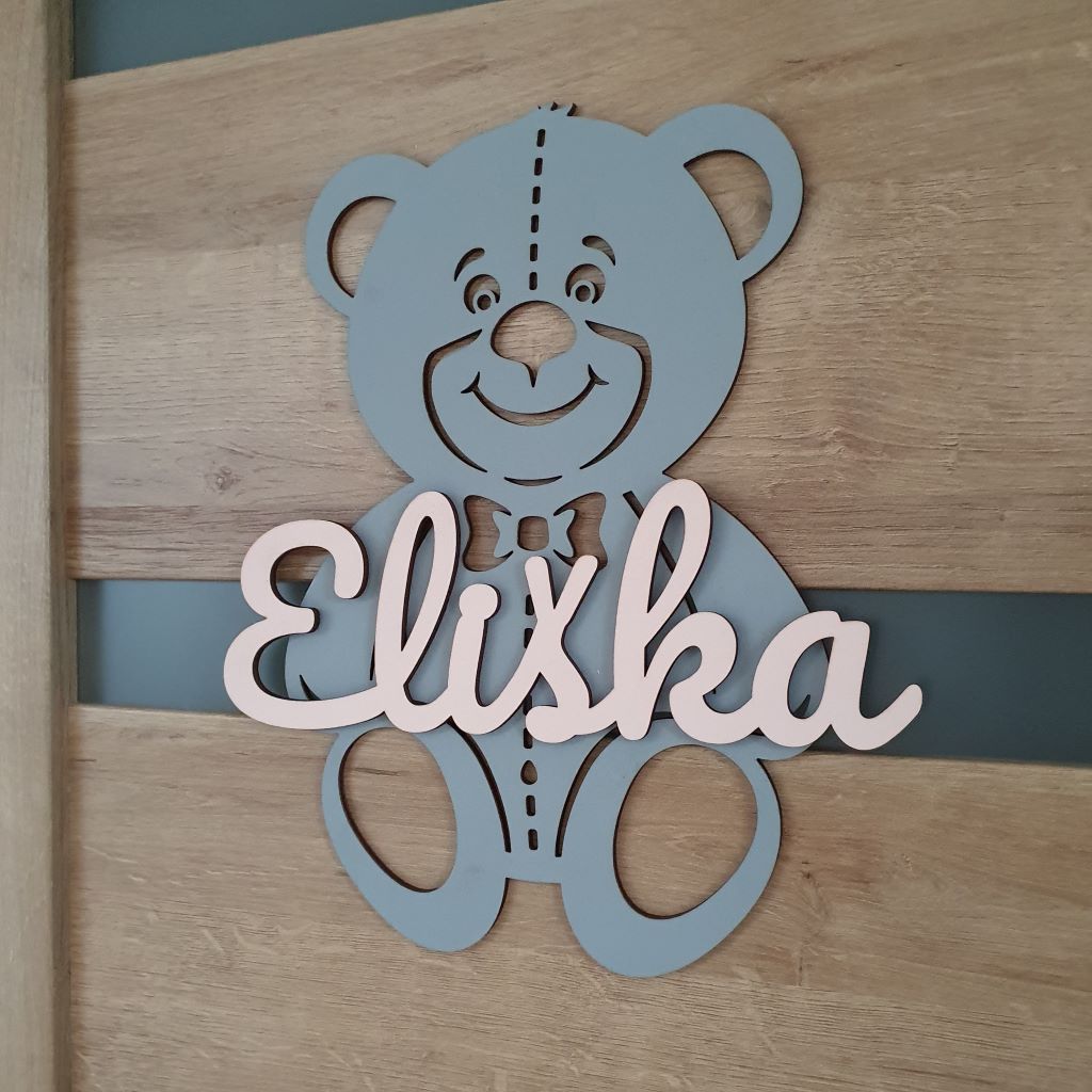 Drevená dekorácia macko s vlastným menom ozdobí každé dvere či interiér detskej izby. Môžete ho tiež pripevniť na stenu a stane sa tak obľúbeným doplnkom, ktorý zútulní každú detskú izbu a dodá jej jedinečnú atmosféru. Vďaka širokému výberu farebných kombinácii ju ľahko zladíte k farbe steny a k nábytku v detskej izbe. Je to ideálny darček pre dievčatko aj pre chlapčeka a tiež k narodeniu dieťatka, na krstiny, narodeniny, či meniny.
