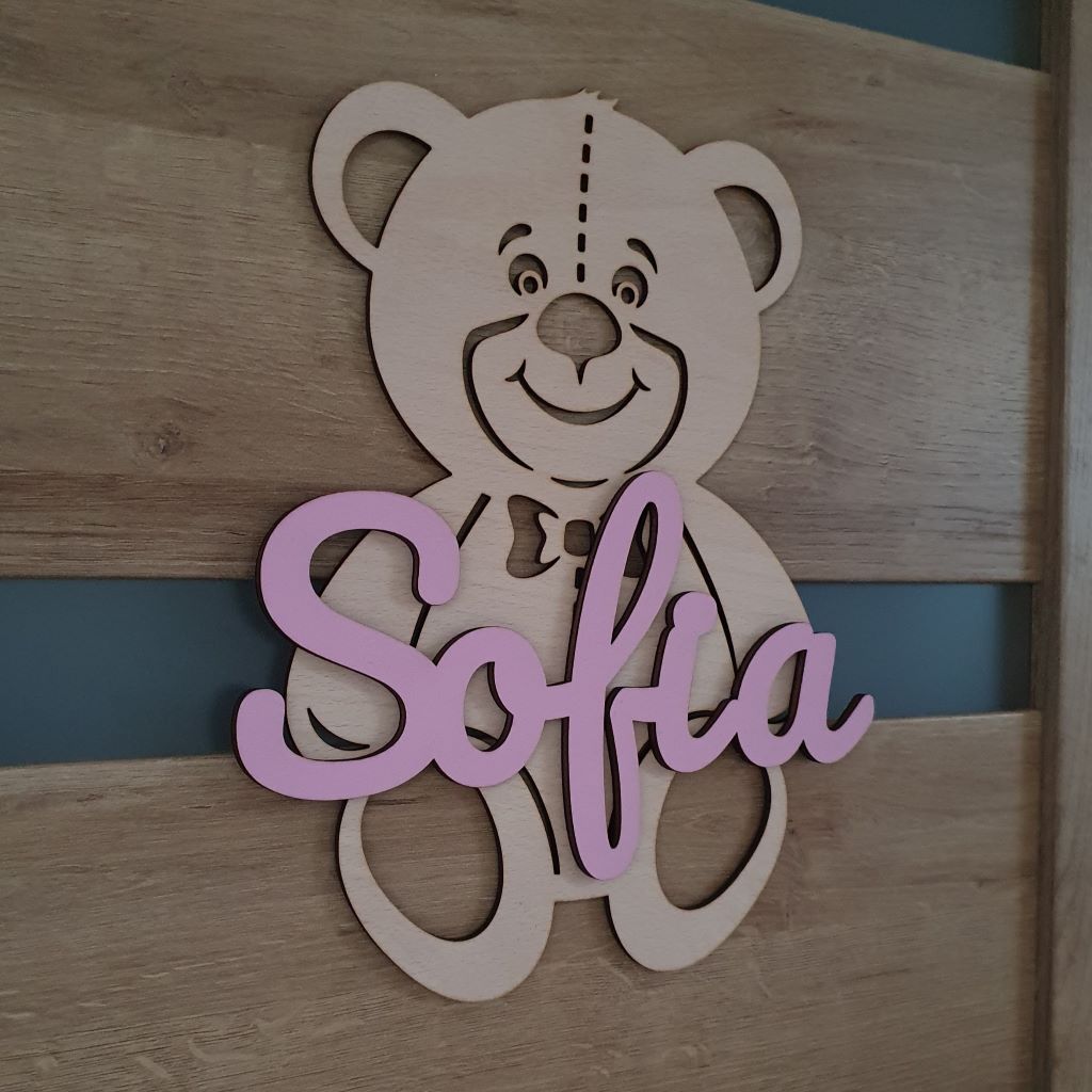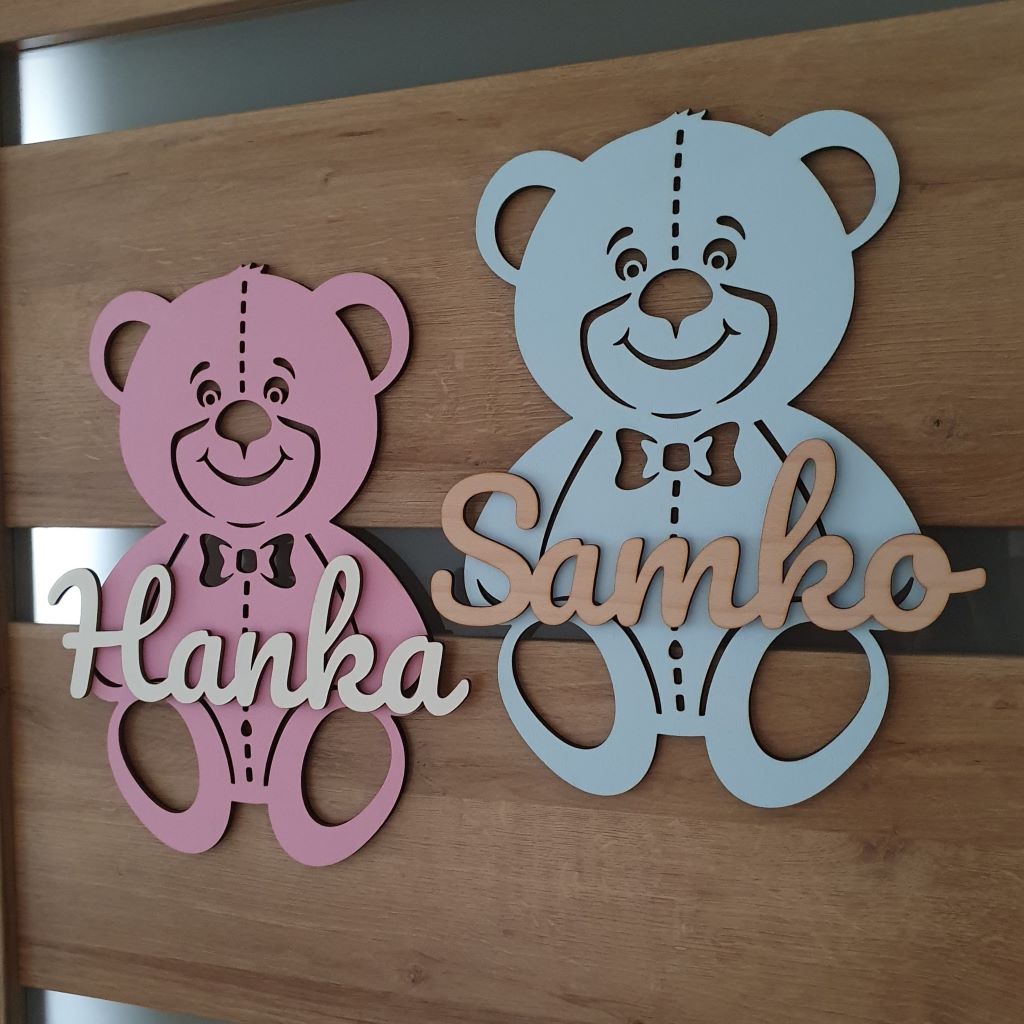 Drevená dekorácia Macko s menom