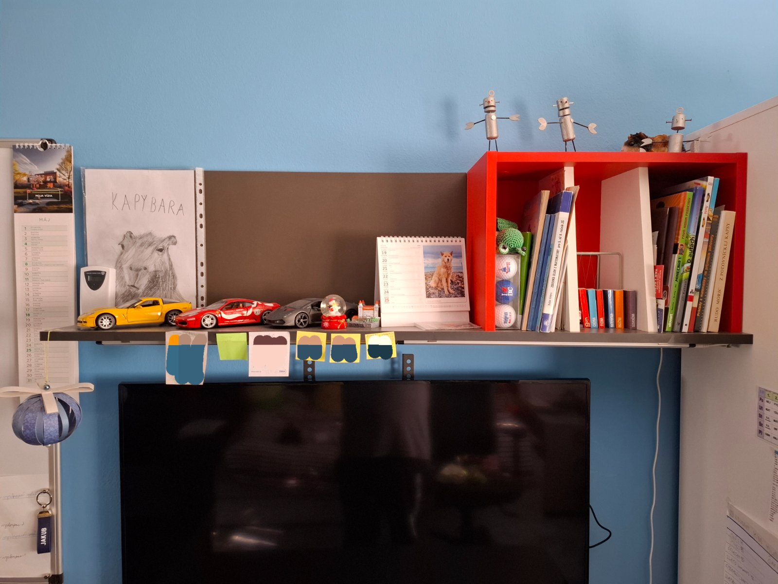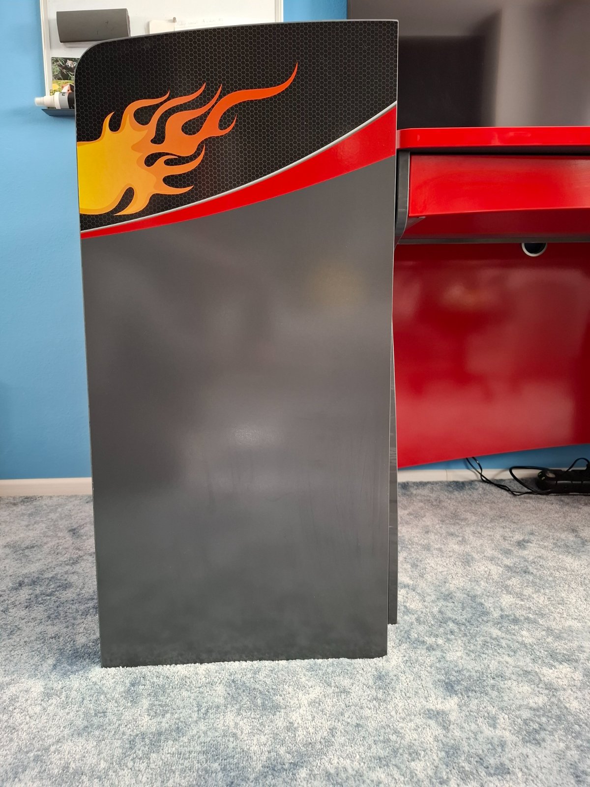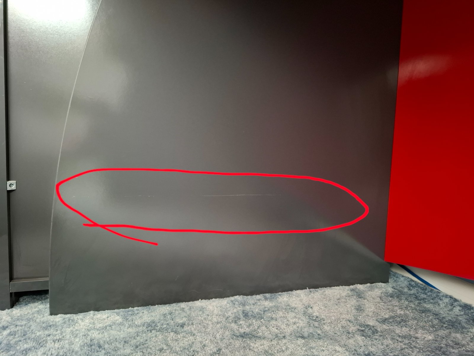 skrabnute na hornej doske pri otvore na kable a na lavej nohe z vnutornej strany, zistili sme az pri foteni, vid. foto,