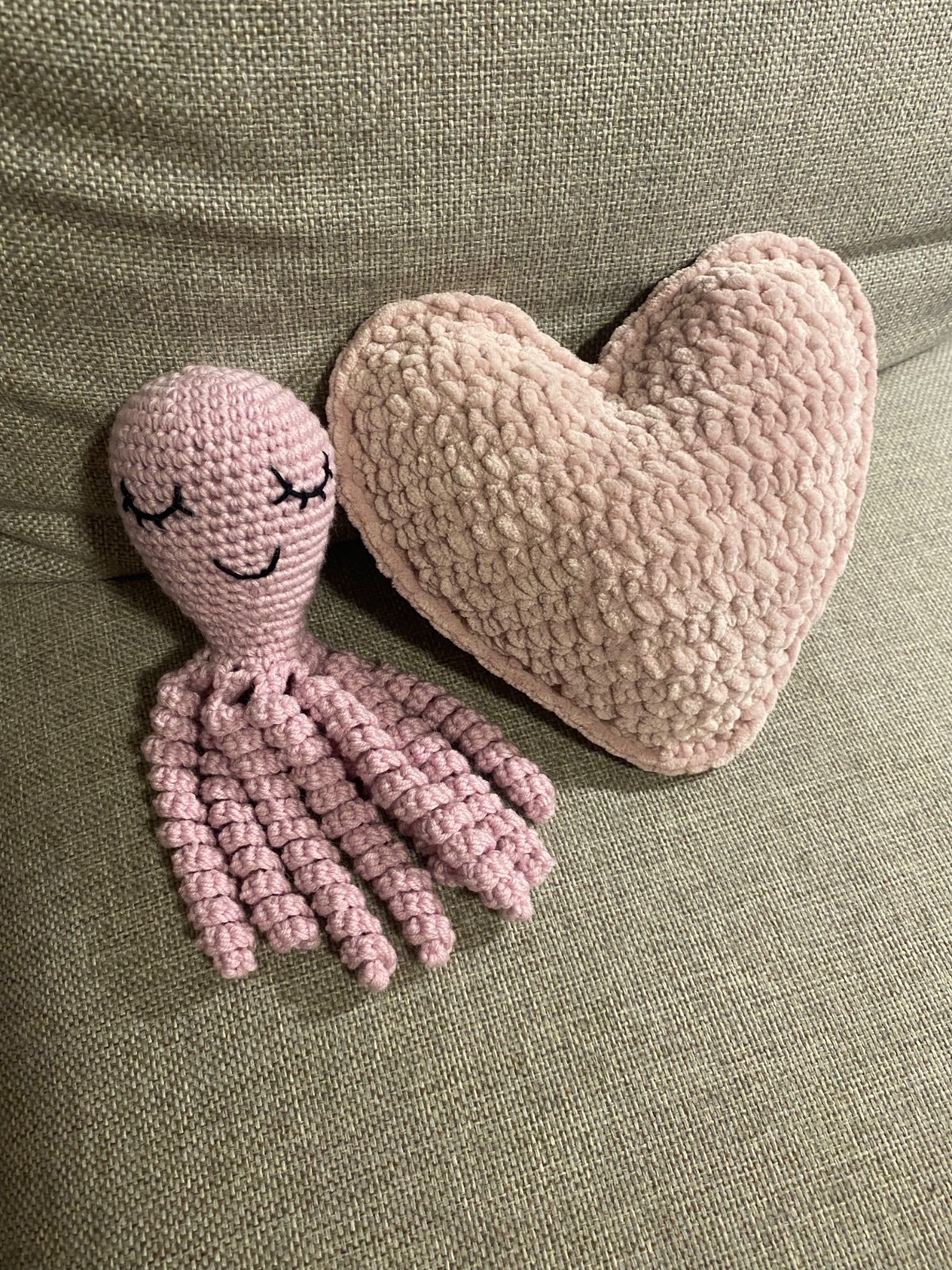 Háčkované srdiečko- mini vankúšik je vyrobený z mäkkej, príjemnej vlny, vyplnené antialergickým dutým vláknom. Tento kus je v staroružovej farbe, rozmery 18cm x 18 cm.