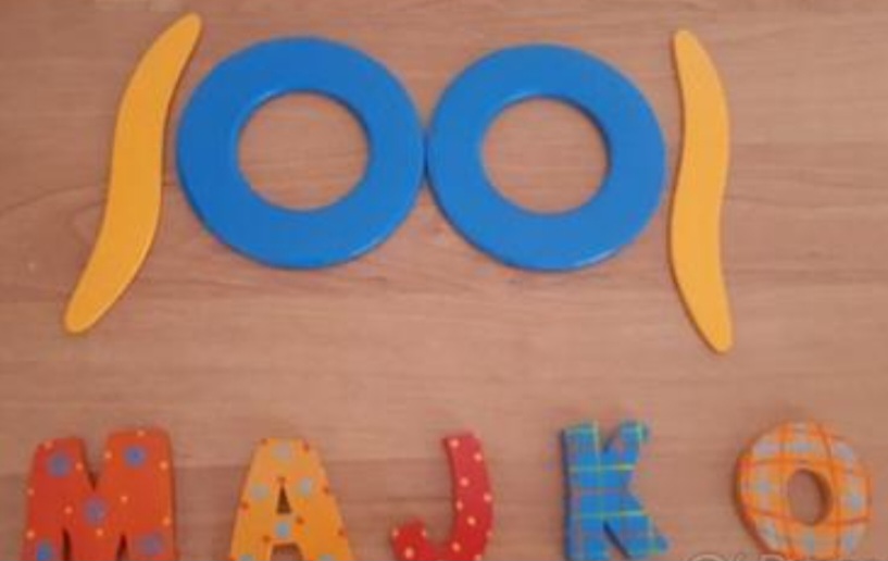 Predám písmenká zo synovej izby. Odfotené na topánkovej krabici. (kvôli predstave o veľkosti). Cena spolu 8 eur.