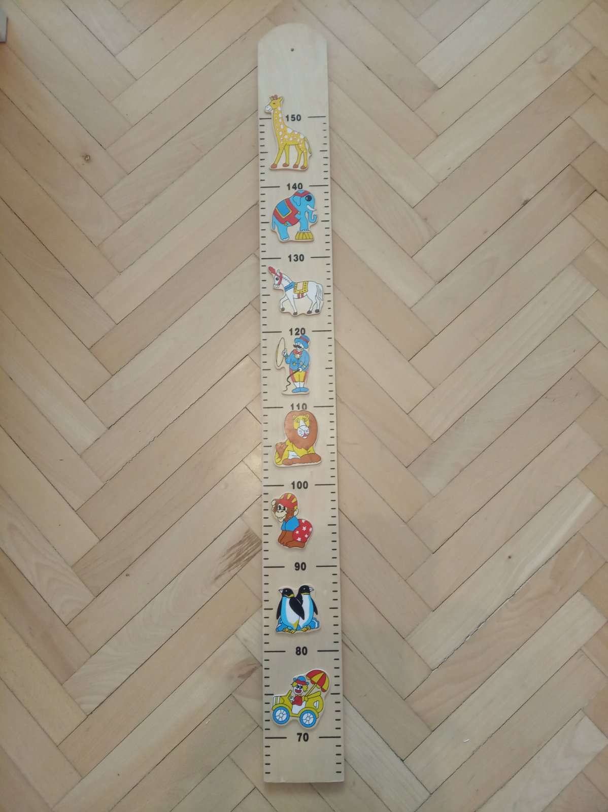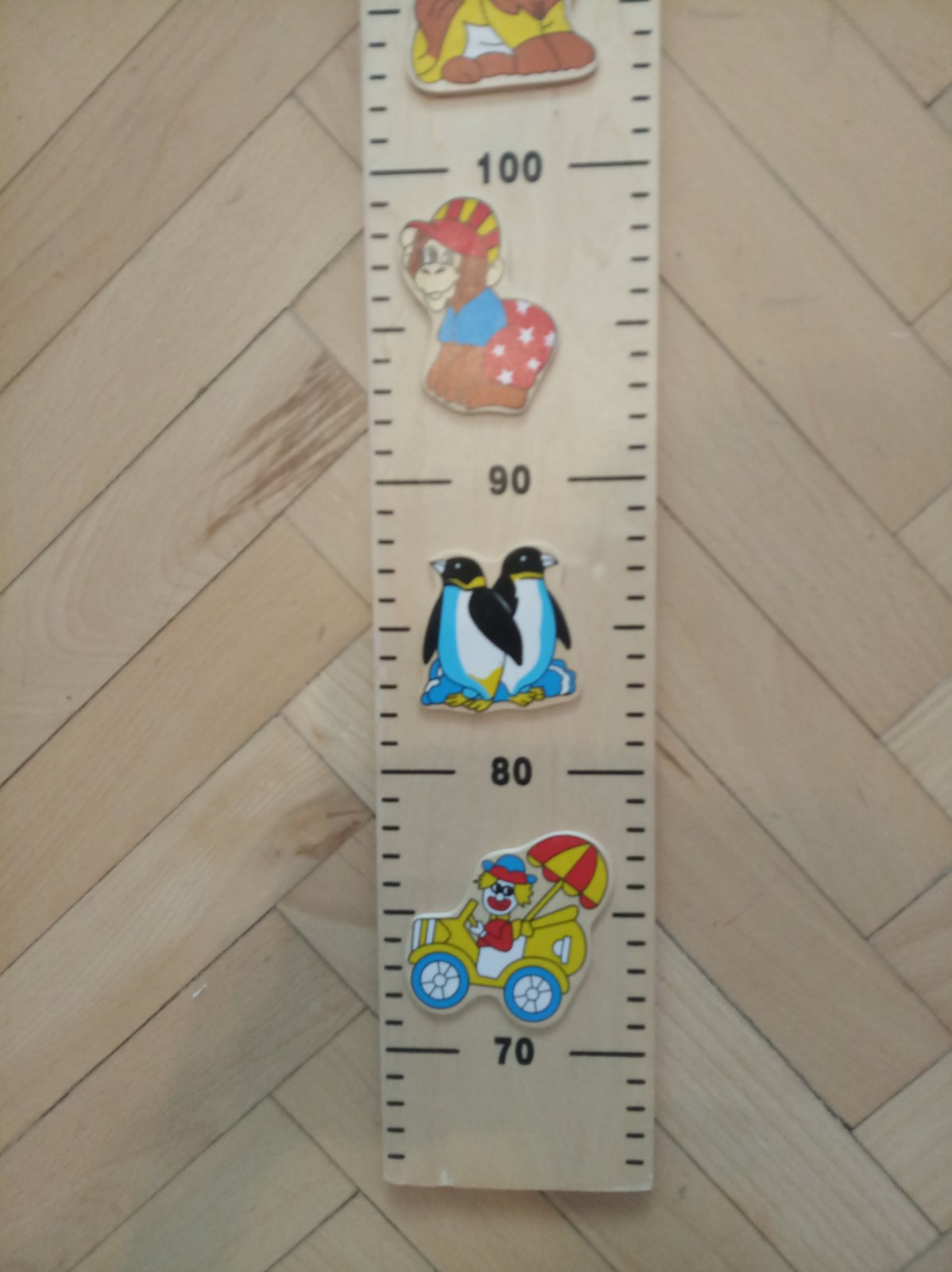 Krásny drevený meter na stenu, bez poskodeni