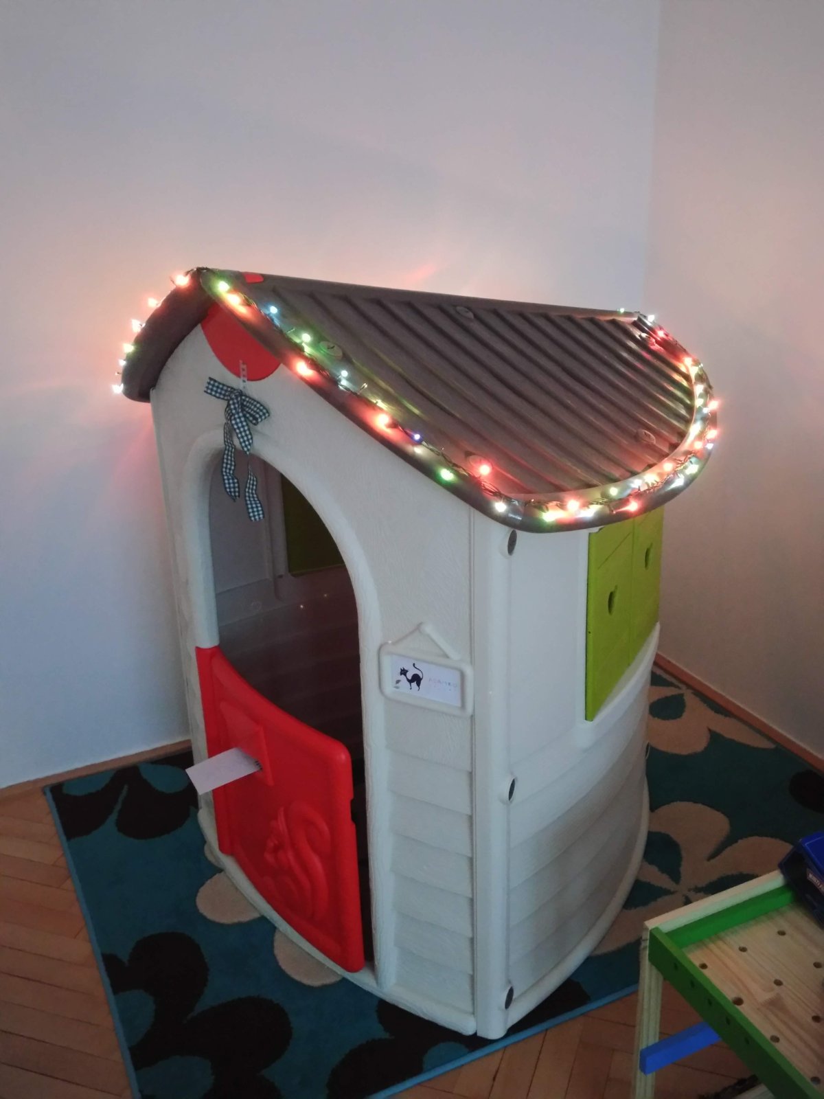 Posuvame domcek, pouzivany v interiéri. Bez svetielok a ostatnych veci :) Už je v demonte. Mysleli sme,že ho ešte vybalime,tak nálepky ostali,to je ale detail.