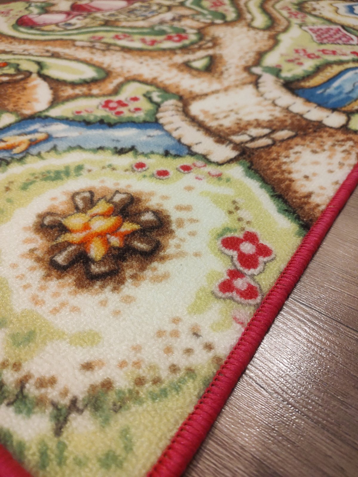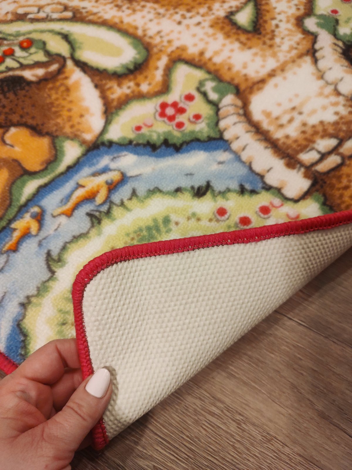 Nový, nepoužívaný koberček. S protišmykovou zadnou stranou. Krásne sýte farby, ružová sa na fotke sa nedala celkom dobre zachytiť...