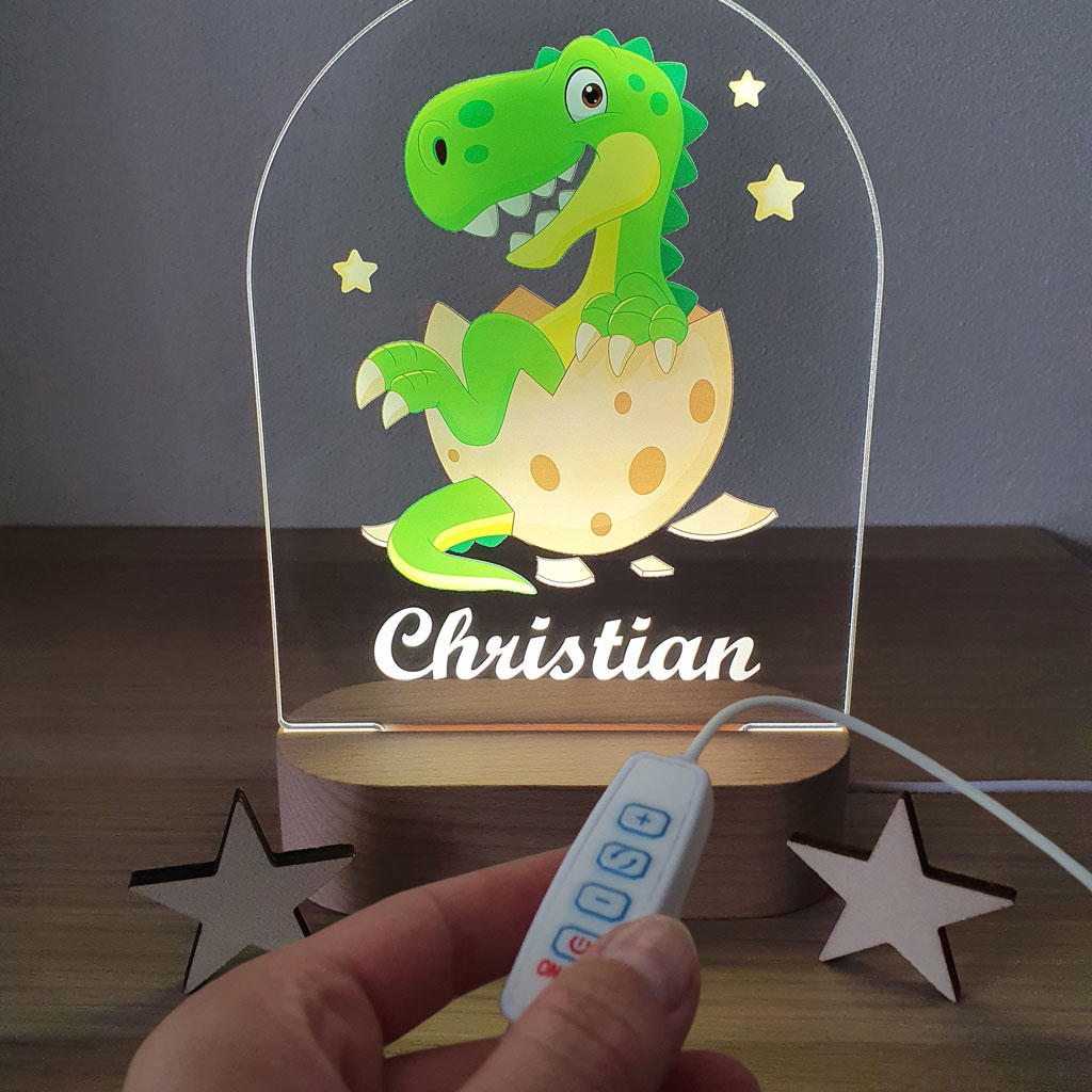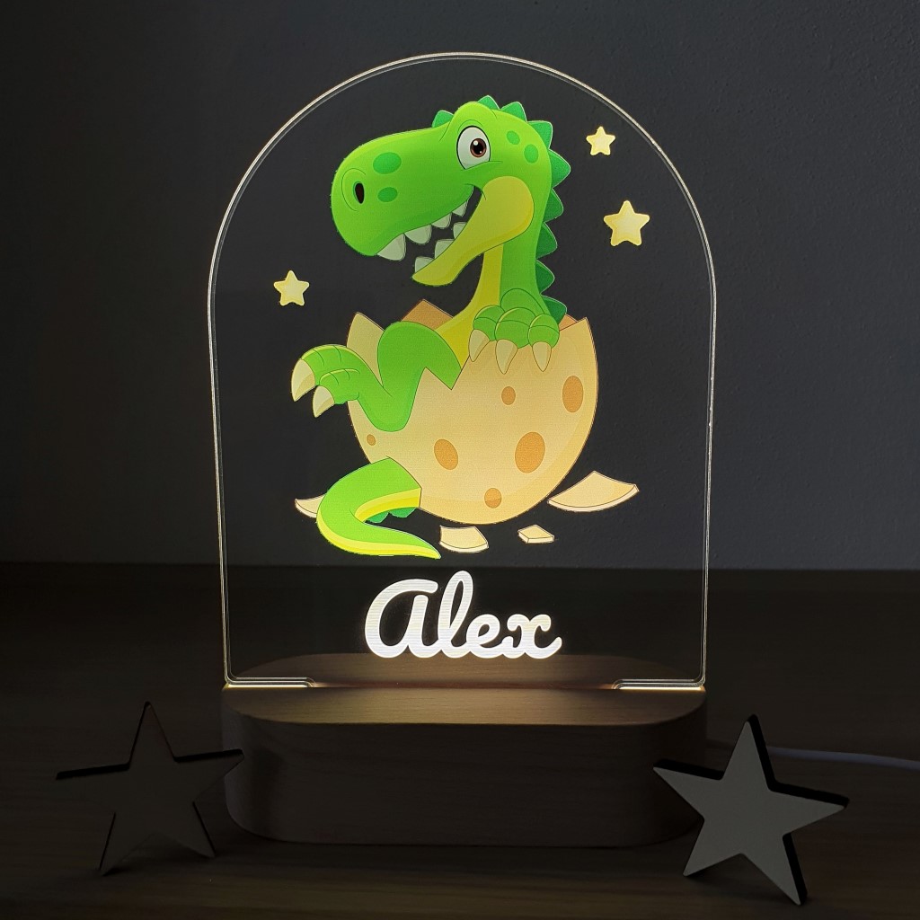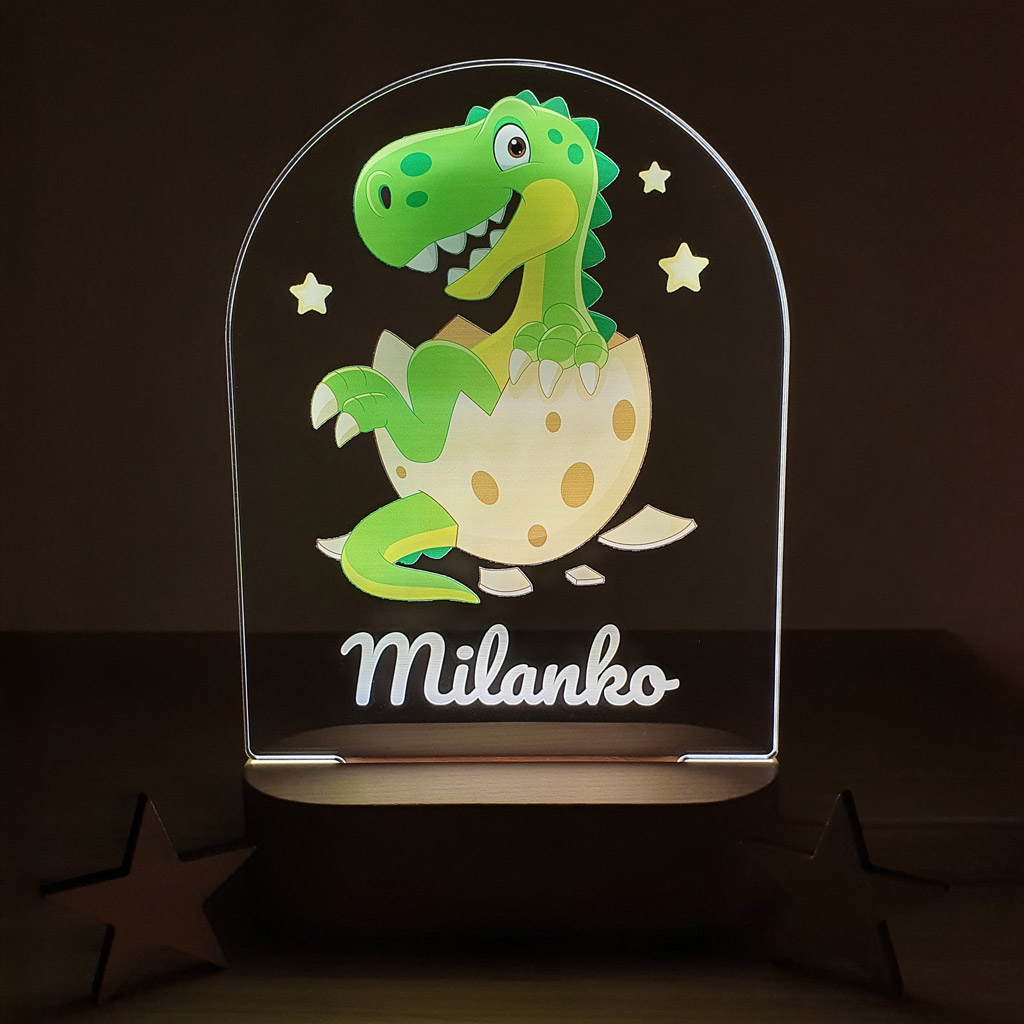 LED nočná lampa s vlastným menom dieťatka a motívom zeleného dinosaura rozžiari nielen detskú izbičku, ale aj očká detí. Je to tiež ideálny darček k narodeniu dieťatka, na krstiny, narodeniny, či meniny.