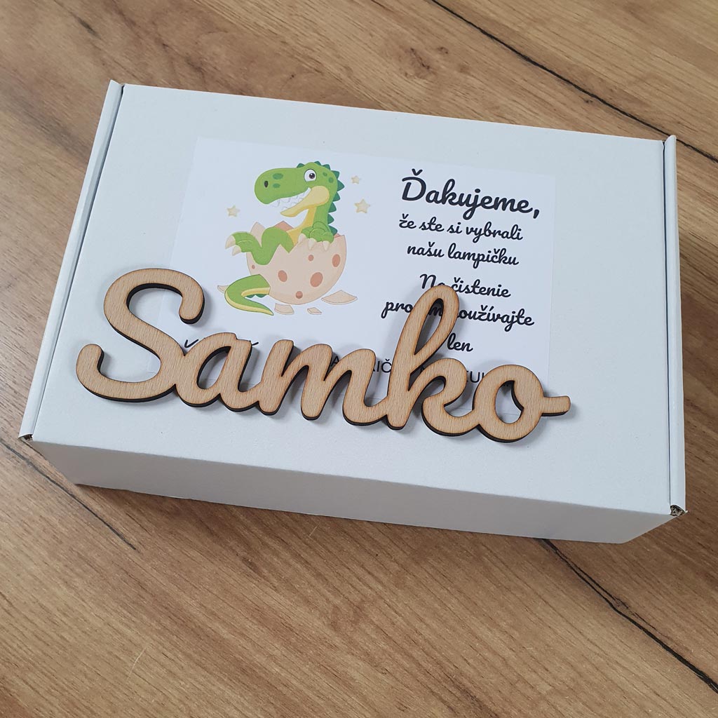 Meno dieťatka napíšte do políčka pri výrobku. Ak si prajete pridať venovanie aj na drevený podstavec lampičky, tak stačí označiť možnosť (Gravírovanie na podstavec + 5 €) a napísať želaný text. Po prijatí objednávky Vám pošleme na email meno aj Váš text vo viacerých typoch písma na výber.