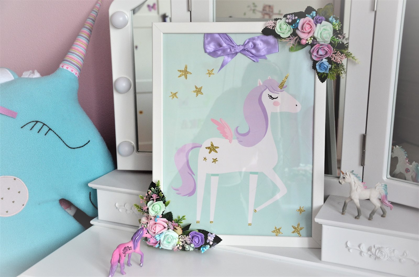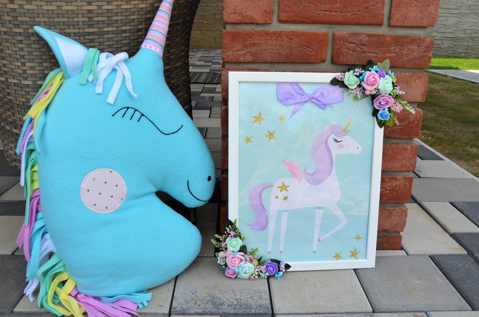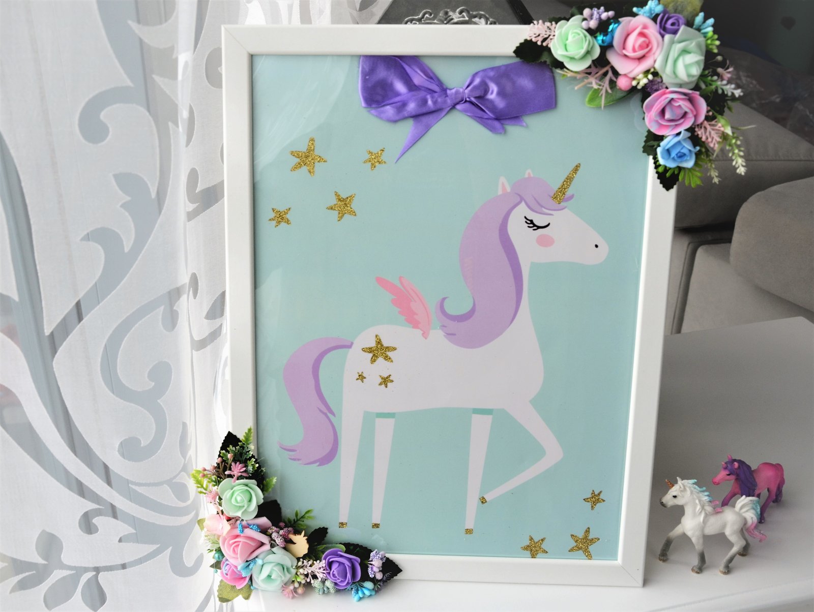 nevymieňam!!!obraz jednorožec,,rám je plastový,vyzerá ako drevený,dodekorovaný kvetmi,vhodný na zavesenie,nedá sa postaviť..v ponuke aj iné inzeráty..urobte kuk