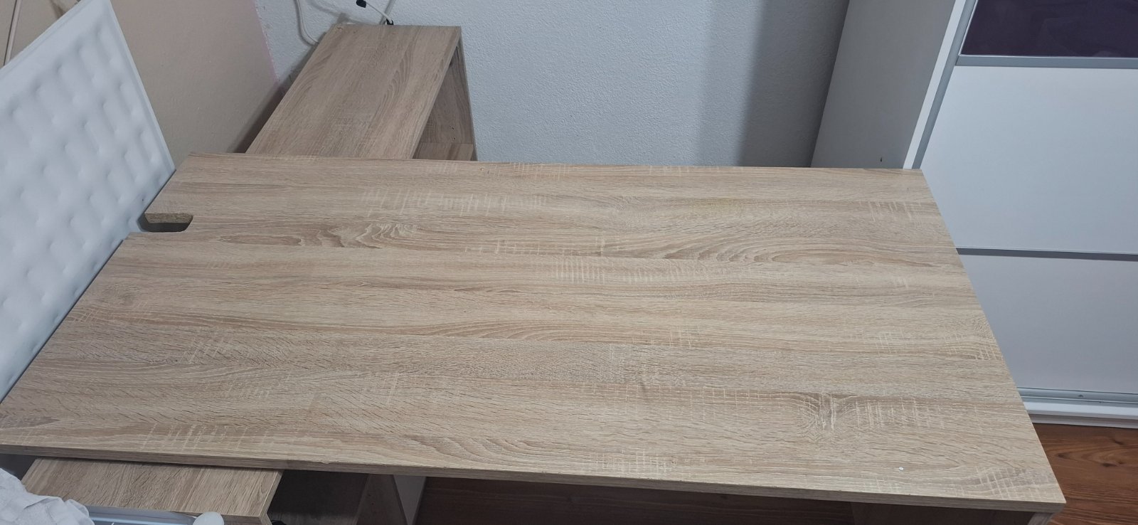 Predám písací stôl v zachovalom stave. Na hornej doske vypílený otvor, spredu trochu ošuchnutý, zadná preglejka jemne vypuklá, no stôl ešte poslúži. Predné dvierka aj šuflík sme olepili tapetou a dali nové úchytky. Šikovný majster si s drobnými chybičkami isto poradí. Cena 70€, viem sa dohodnúť na cene pri rýchlom jednaní, potrebujem sa stola čo najskôr zbaviť z dôvodu kúpi nového, len osobný odber Sebedražie a okolie.
