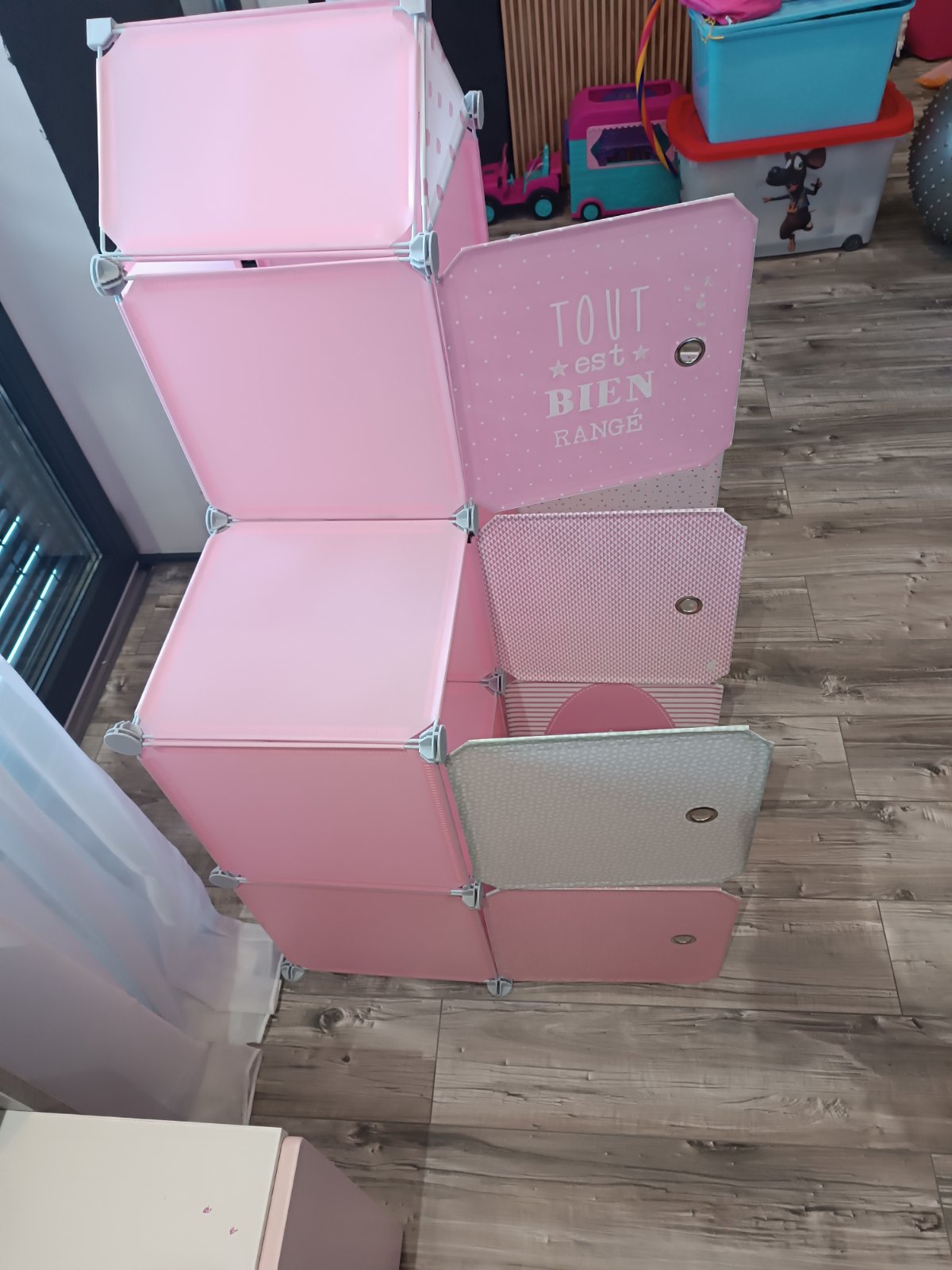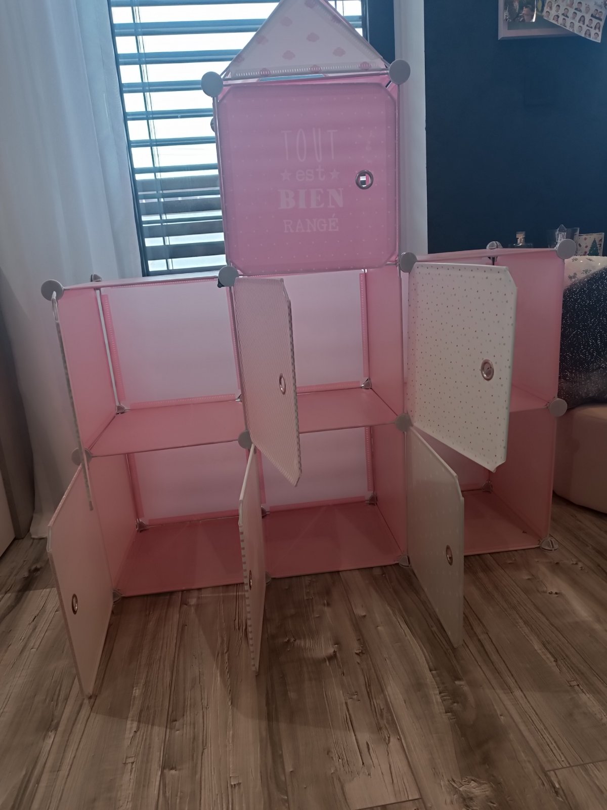 Posúvam krásne dievčenskú komody v tvorbe zámku,, 7.políc s rozmerom 20x20cm. Krásne farebné zladená ružová sivá a biela farba. Krásny doplnok do deckej izby. Celková výška cca 75cm. Šírka 60cm, hĺ...