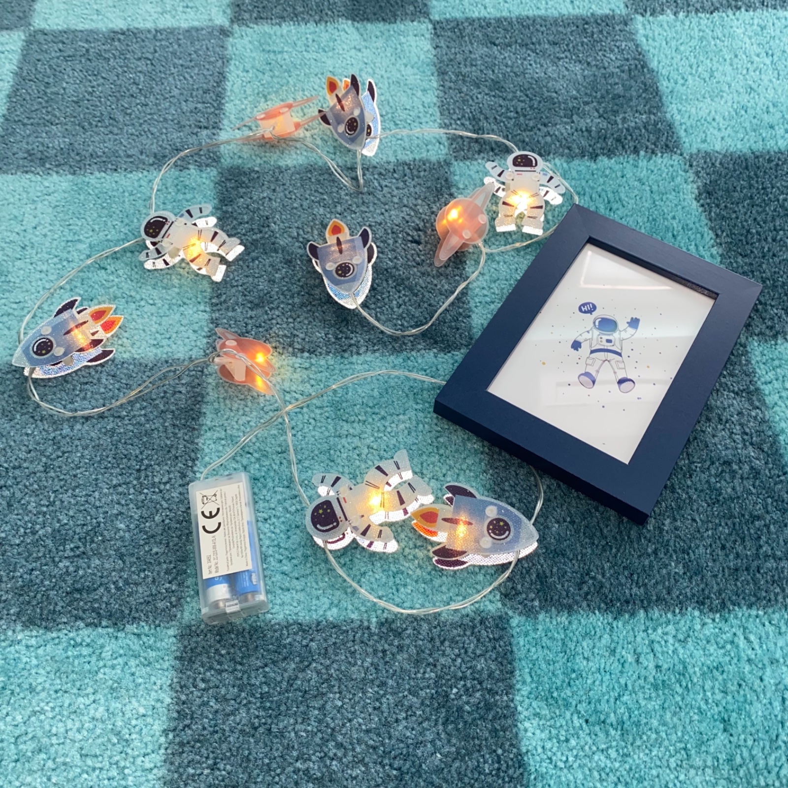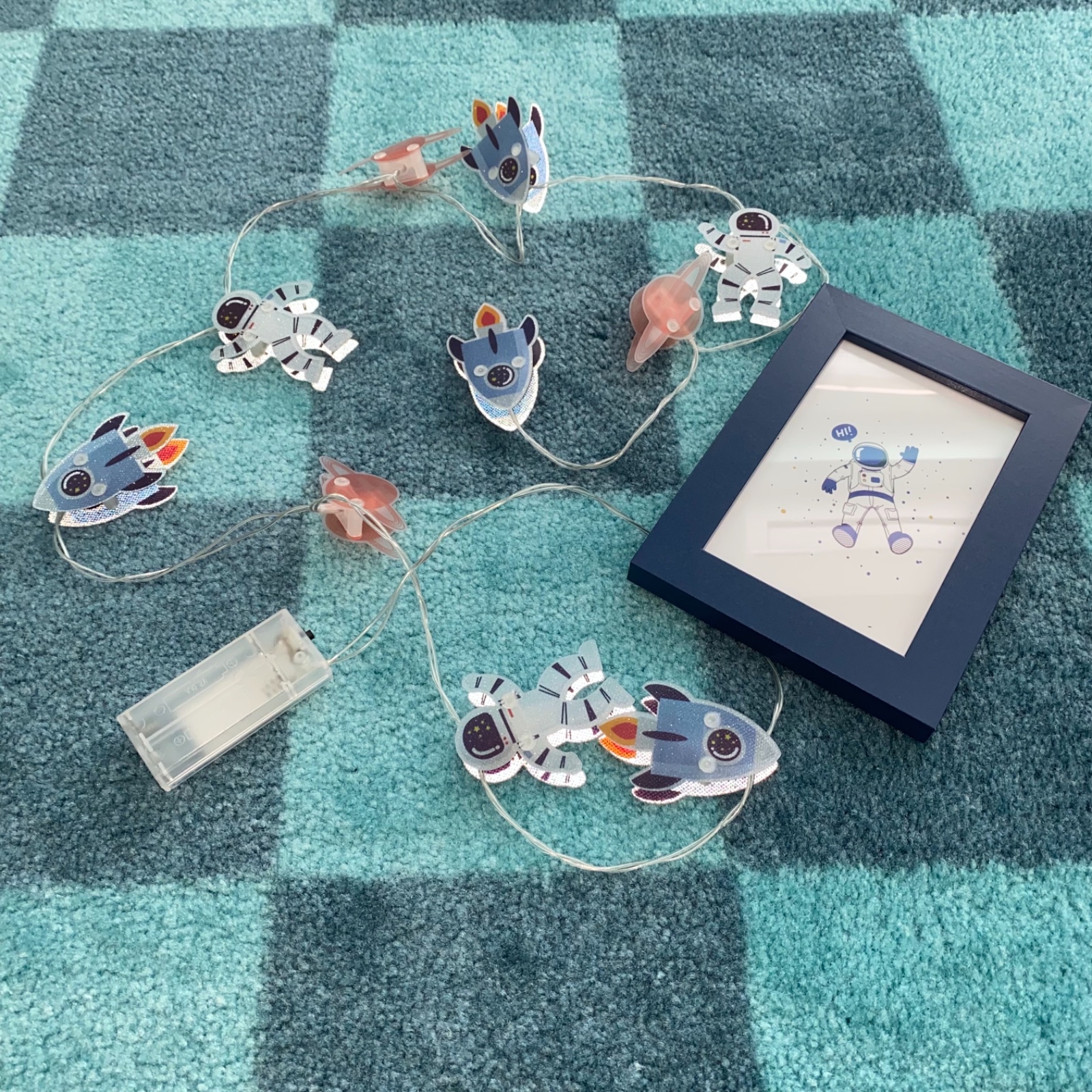 Predám “vesmírne” dekorácie do detskej izby, svietiace girlanda (bez bateriek) + rámik.