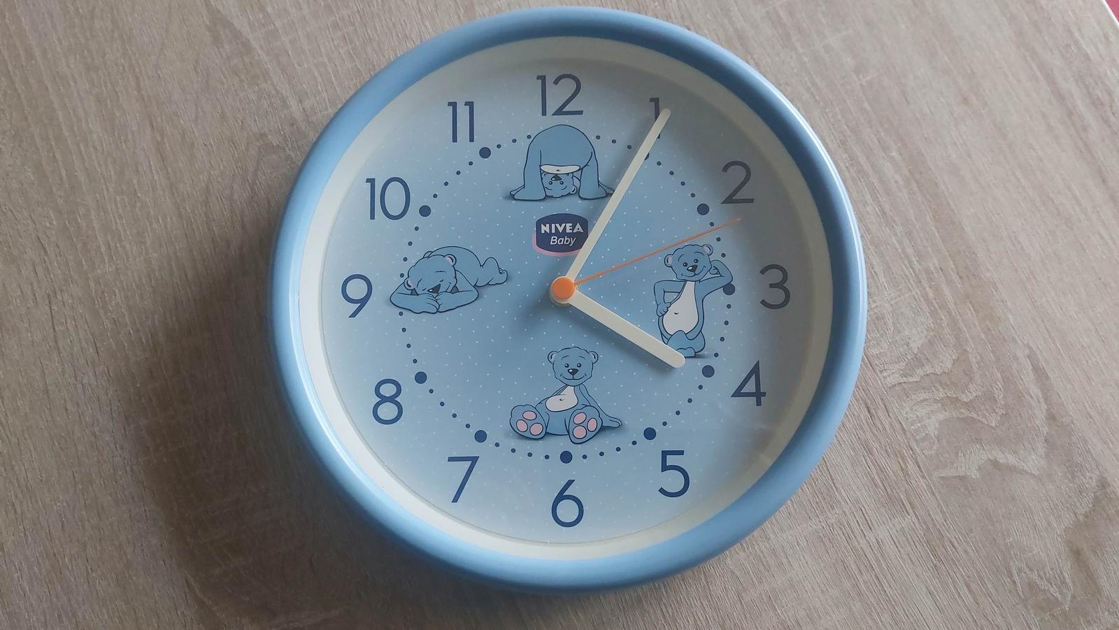 Predám detské hodiny na stenu zn. Nivea Baby, idú presne, (občasný dovoz možný smer RK)