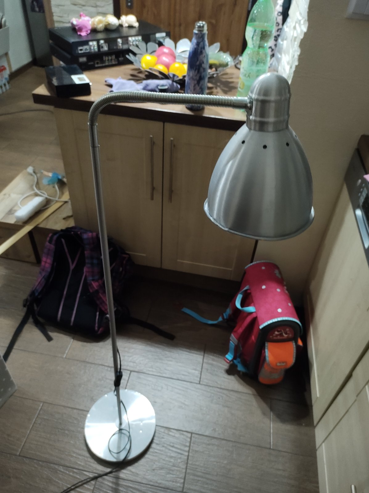 Predám stojacu lampu do detskej izby v striebornom dizajne. Má nejaké ťukance viď foto. Kúpená v IKEA za 20€ pred rokom. Vrchná časť ohybná do všetkých strán.