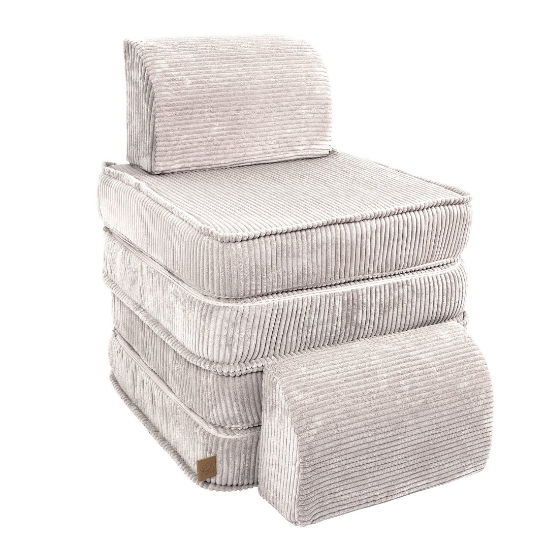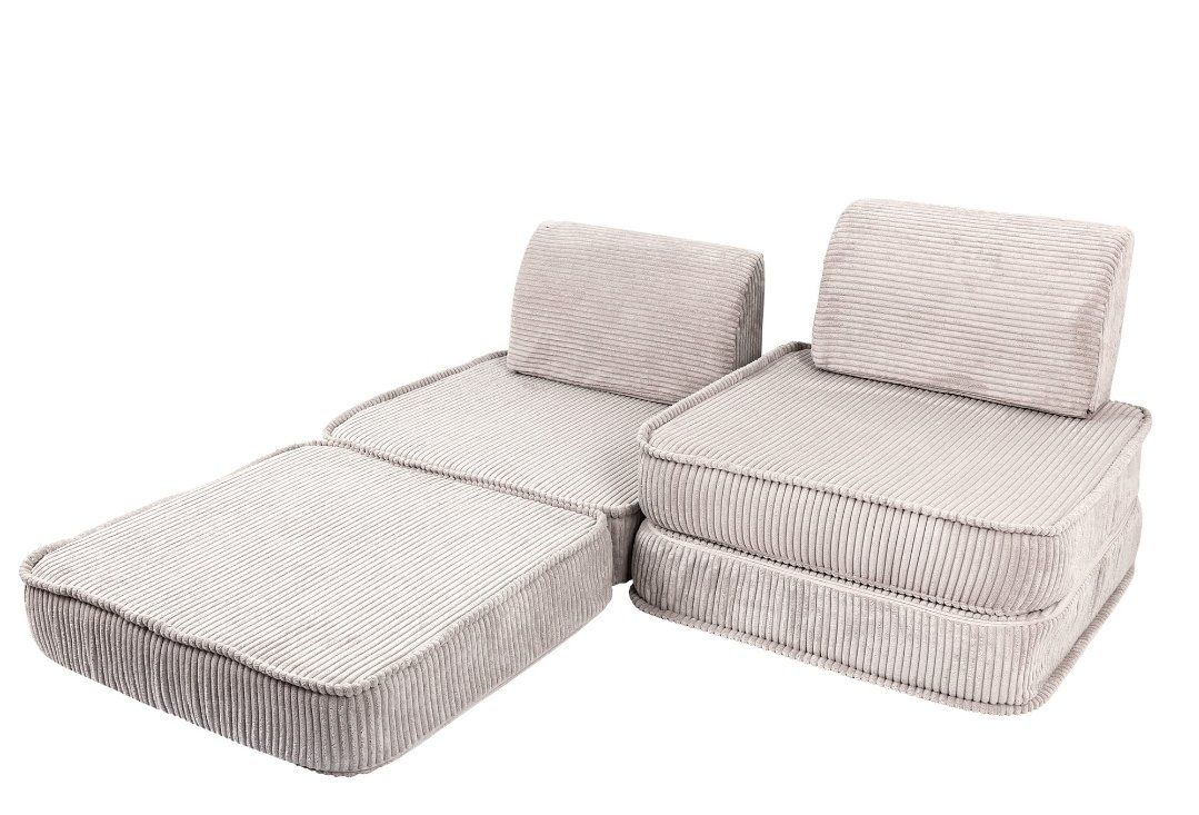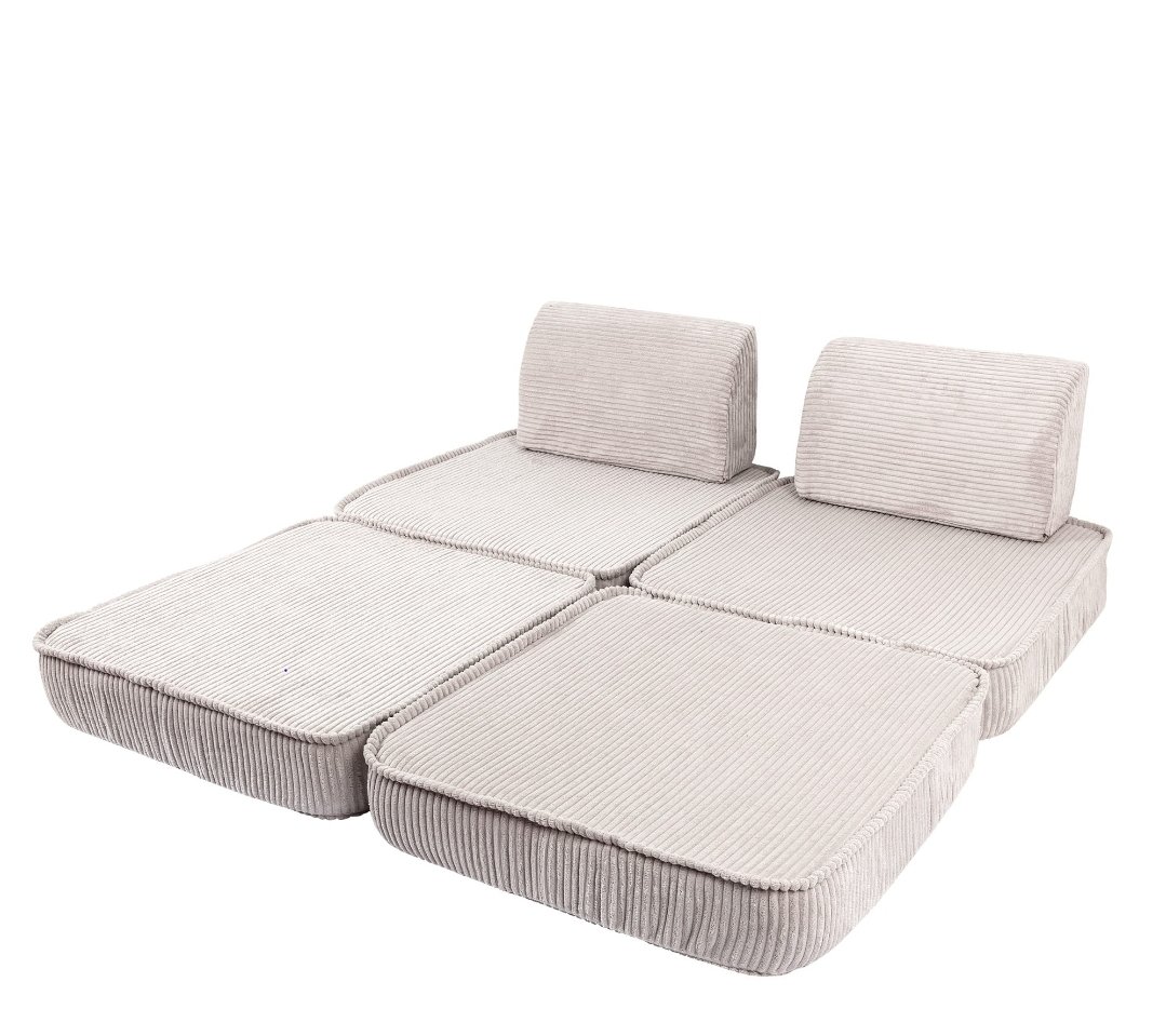 Modulárny dizajn: Pohovka sa skladá zo 6 kusov, ktoré možno ľubovoľne usporiadať a vytvoriť tak rôzne konfigurácie. Ideálna do detskej izby, kútika na hranie alebo na čítanie.